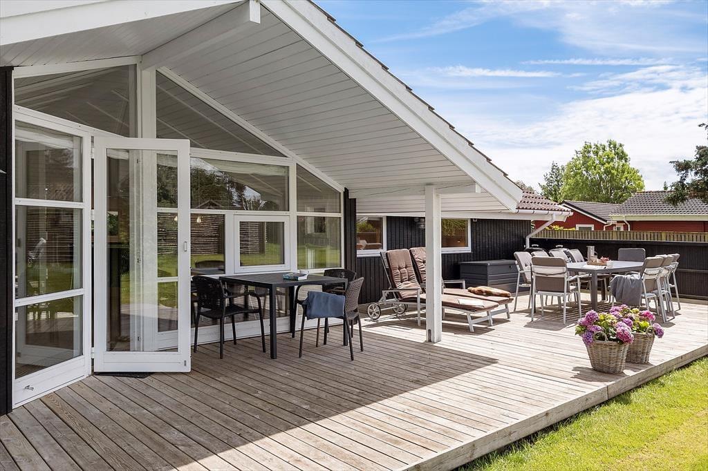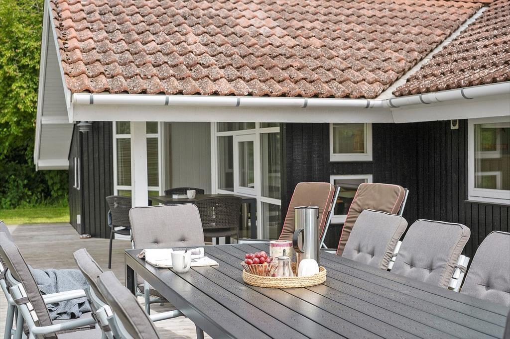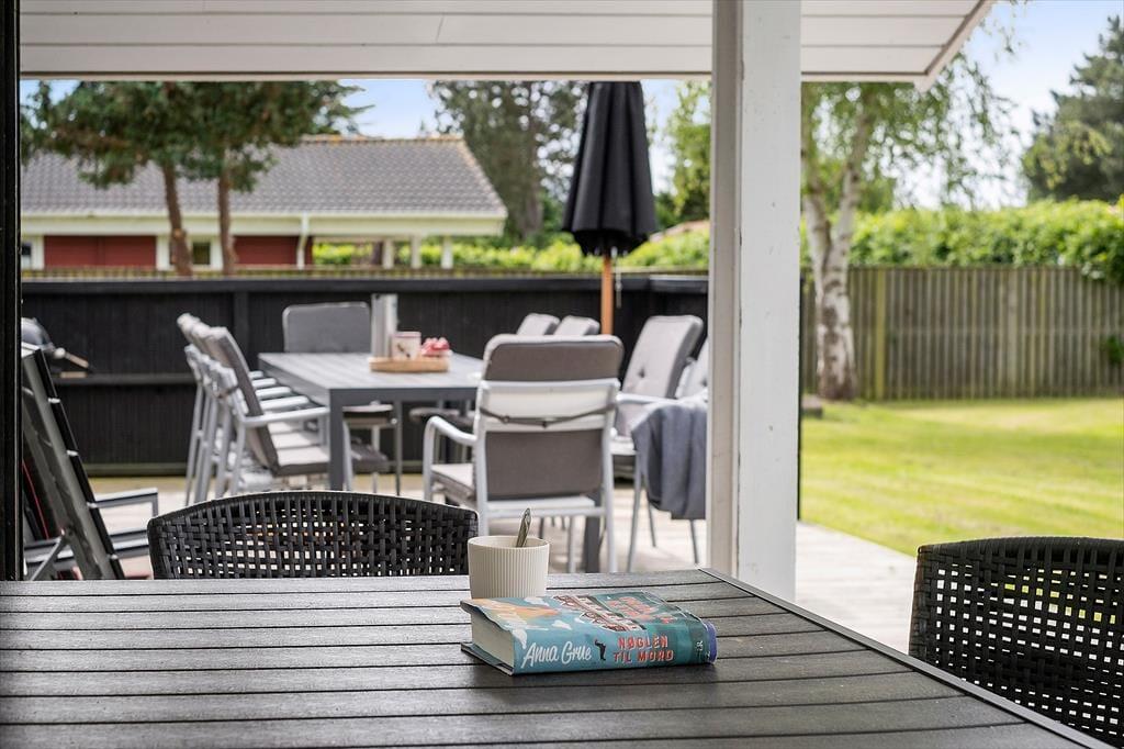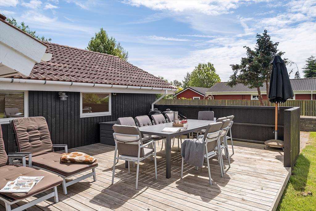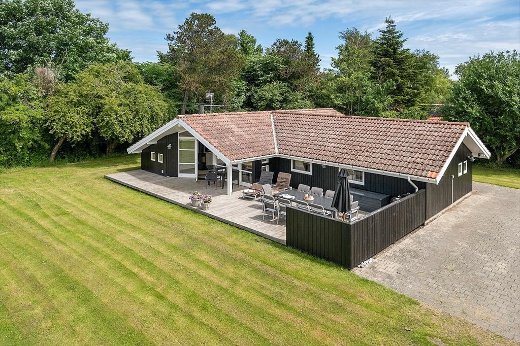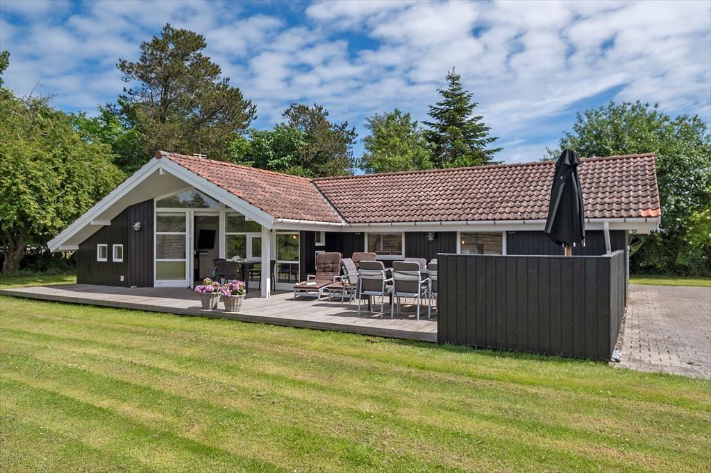 Huset er beliggende på en skøn 1170 m2 ugenert grund med en skøn have, hvor der er god plads til leg og afslapning. Der er en stor delvis overdækket træterrasse hvor udelivet kan nydes i fulde drag. Ved feriehuset er der havemøbler, liggestole, parasol og grill.