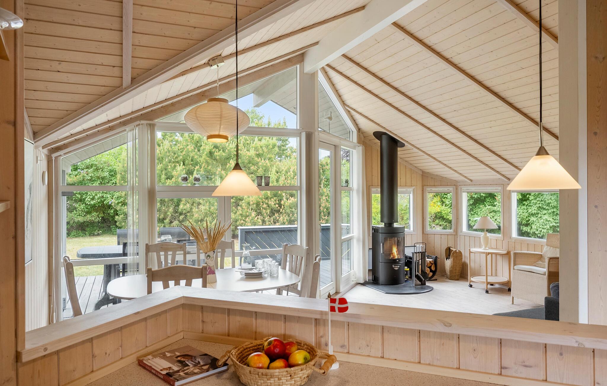 Bare en kort gåtur fra havet forkæler dette charmerende feriehus jer med en lys og hyggelig opholdsstue. Glæd jer til at lave mad i det åbne køkken og nyde hyggelige måltider med familien ved det indbydende spisebord. Stream en god serier, mens I nyder den behagelige atmosfære i det åbne opholdsrum eller fordyb jer i en fascinerende bog.