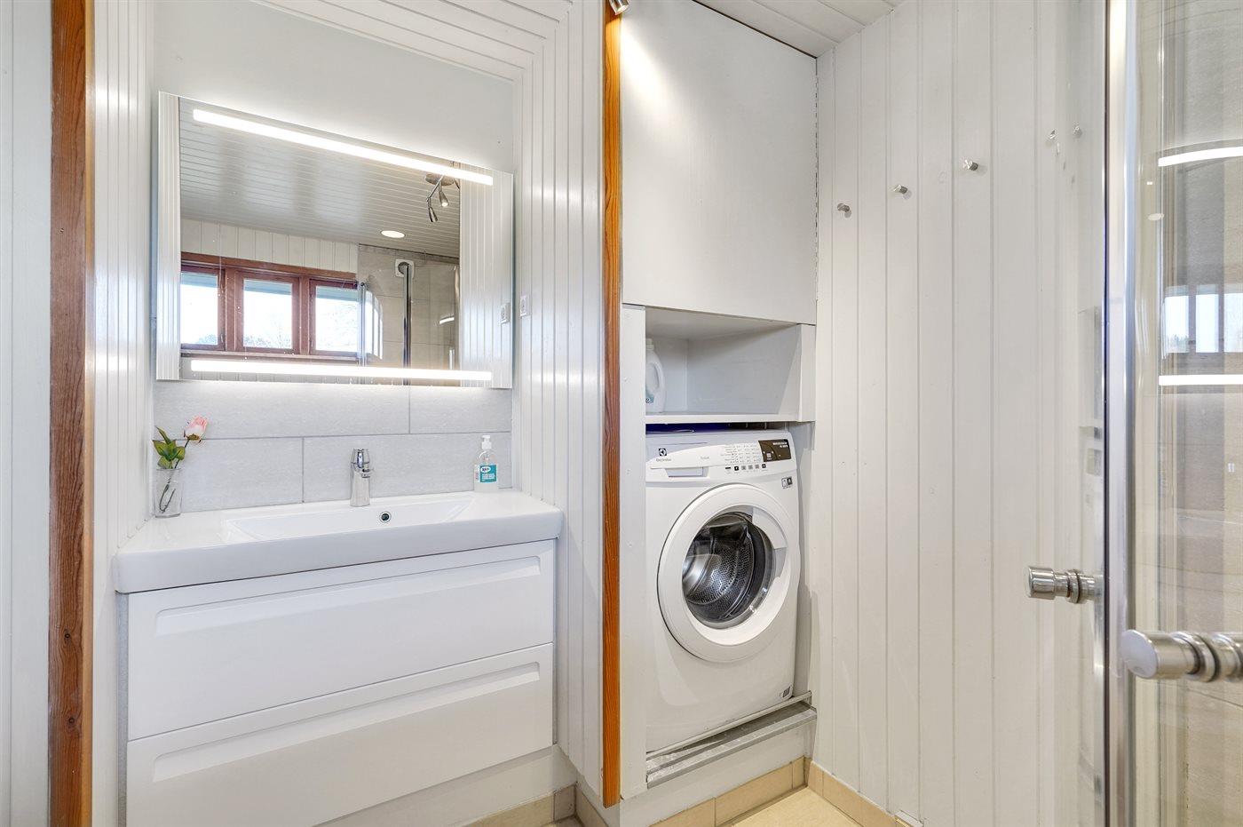 Køkkenet er udstyret med 1 køleskab. Der er 4 keramiske kogeplader, varmluftovn samt opvaskemaskine.