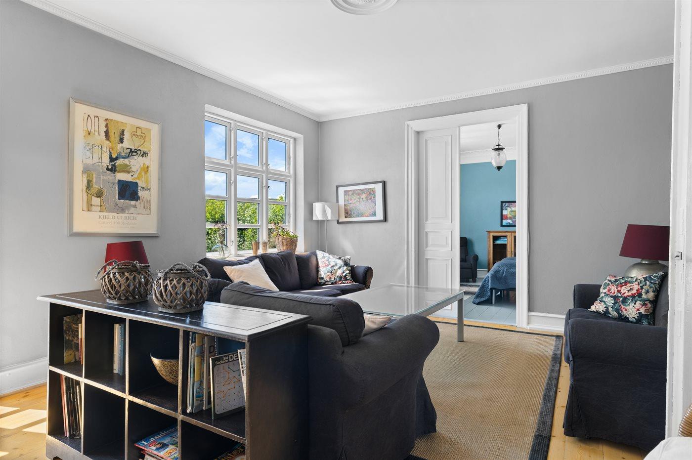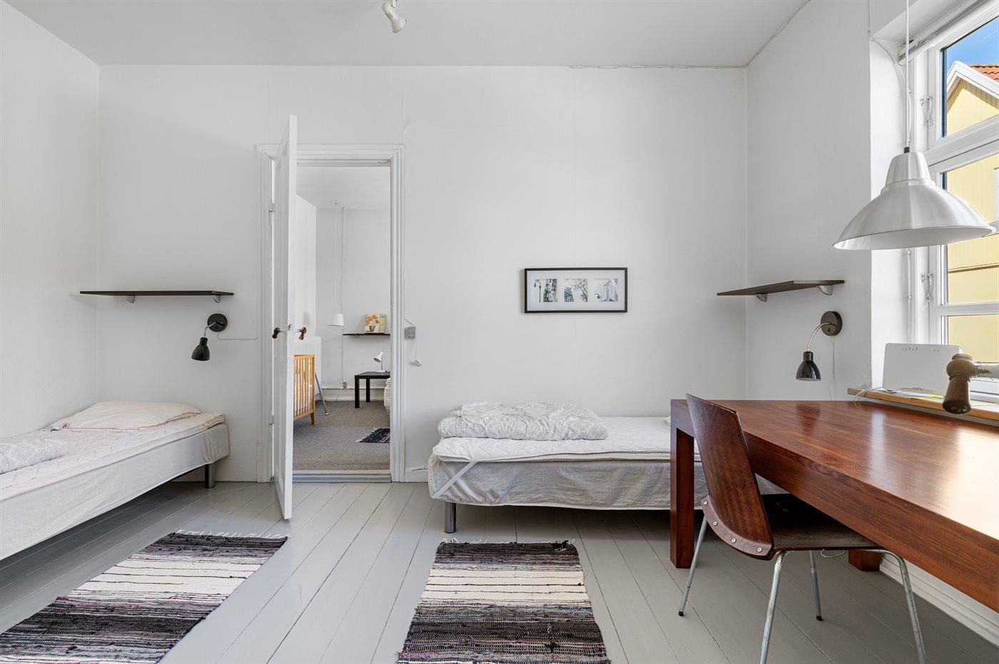 Vær opmærksom på, at det ene soveværelse i stueplan fungerer som gennemgangsværelse til det bagerste værelse, og at der kun er 2 badeværelser i huset, hvoraf det ene er med badekar.