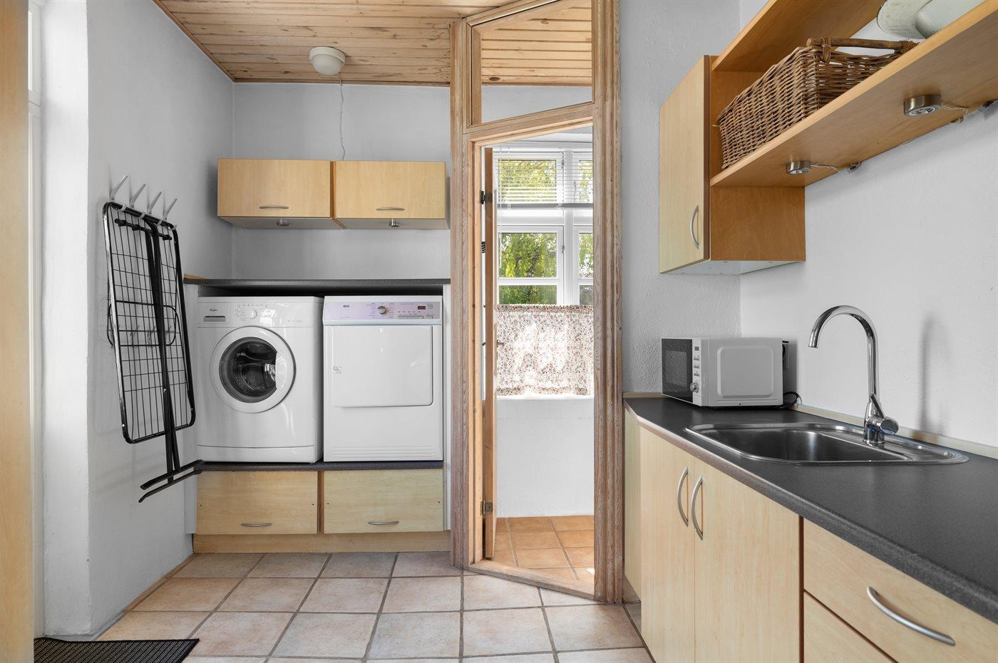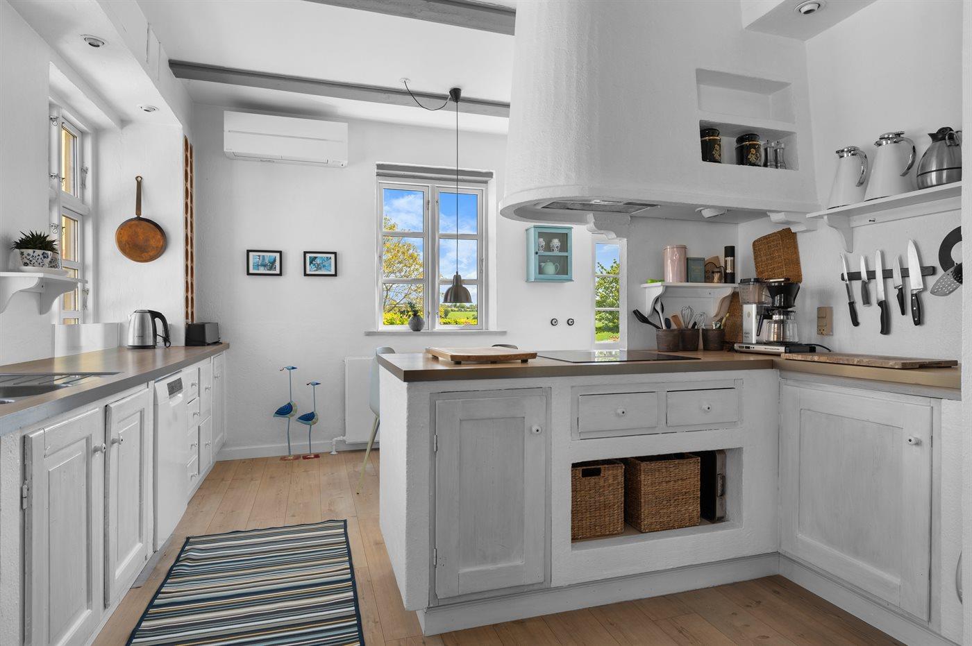 Køkkenet er udstyret med 1 køleskab. Der er 4 induktionskogeplader, varmluftovn, mikrobølgeovn samt opvaskemaskine.