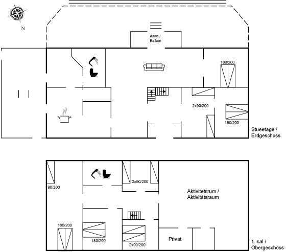 Der er i alt 7 soveværelser. Sovepladserne fordeler sig på: 8 sovepladser i dobbeltsenge. 7 sovepladser i enkeltsenge. Derudover er der 1 stk. barneseng.