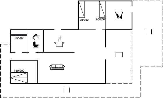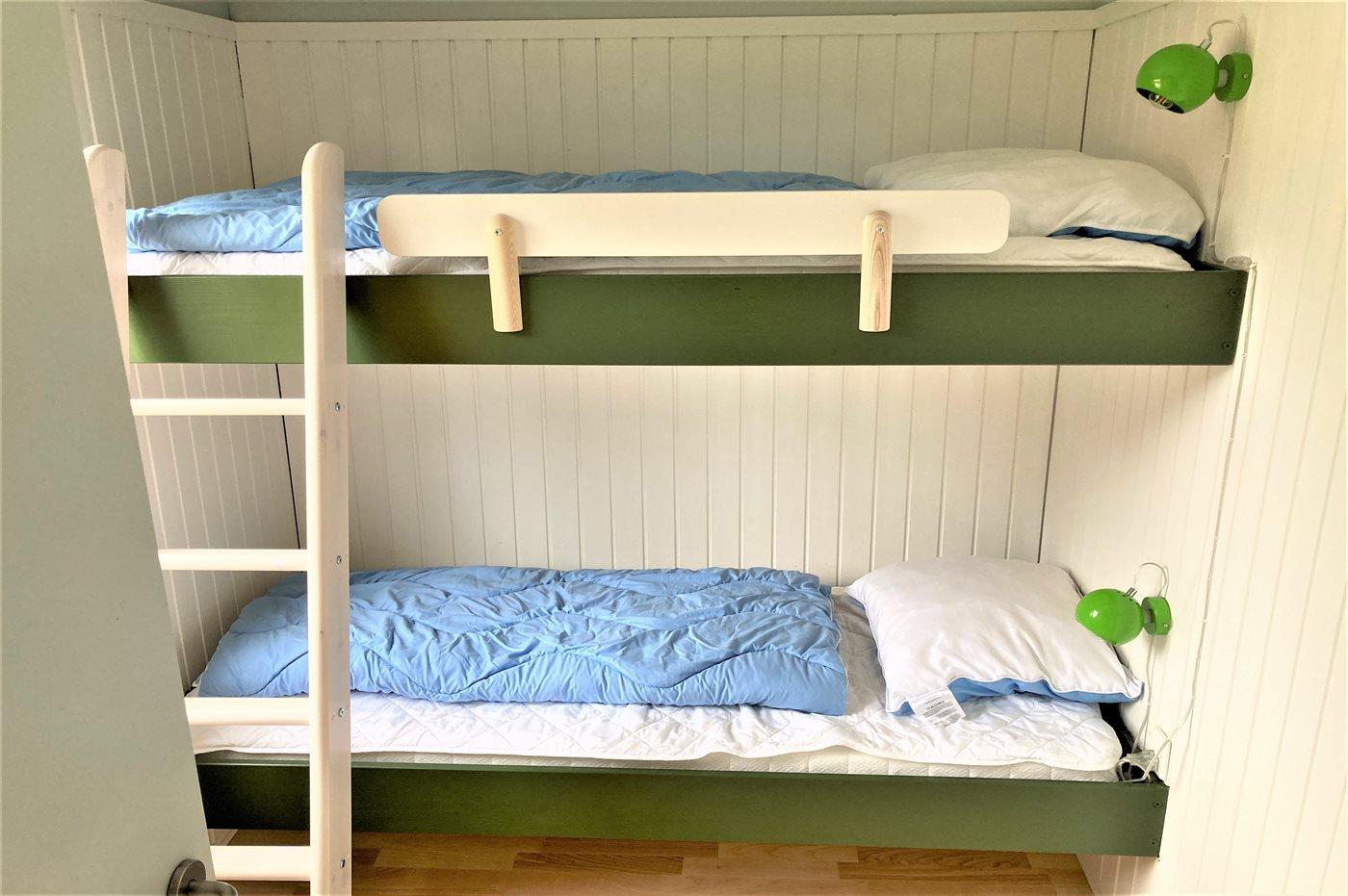 Der er i alt 3 soveværelser. Sovepladserne fordeler sig på: 2 sovepladser i dobbeltseng. 2 sovepladser i enkeltsenge. 2 sovepladser i køjeseng. Derudover er der 1 stk. barneseng.