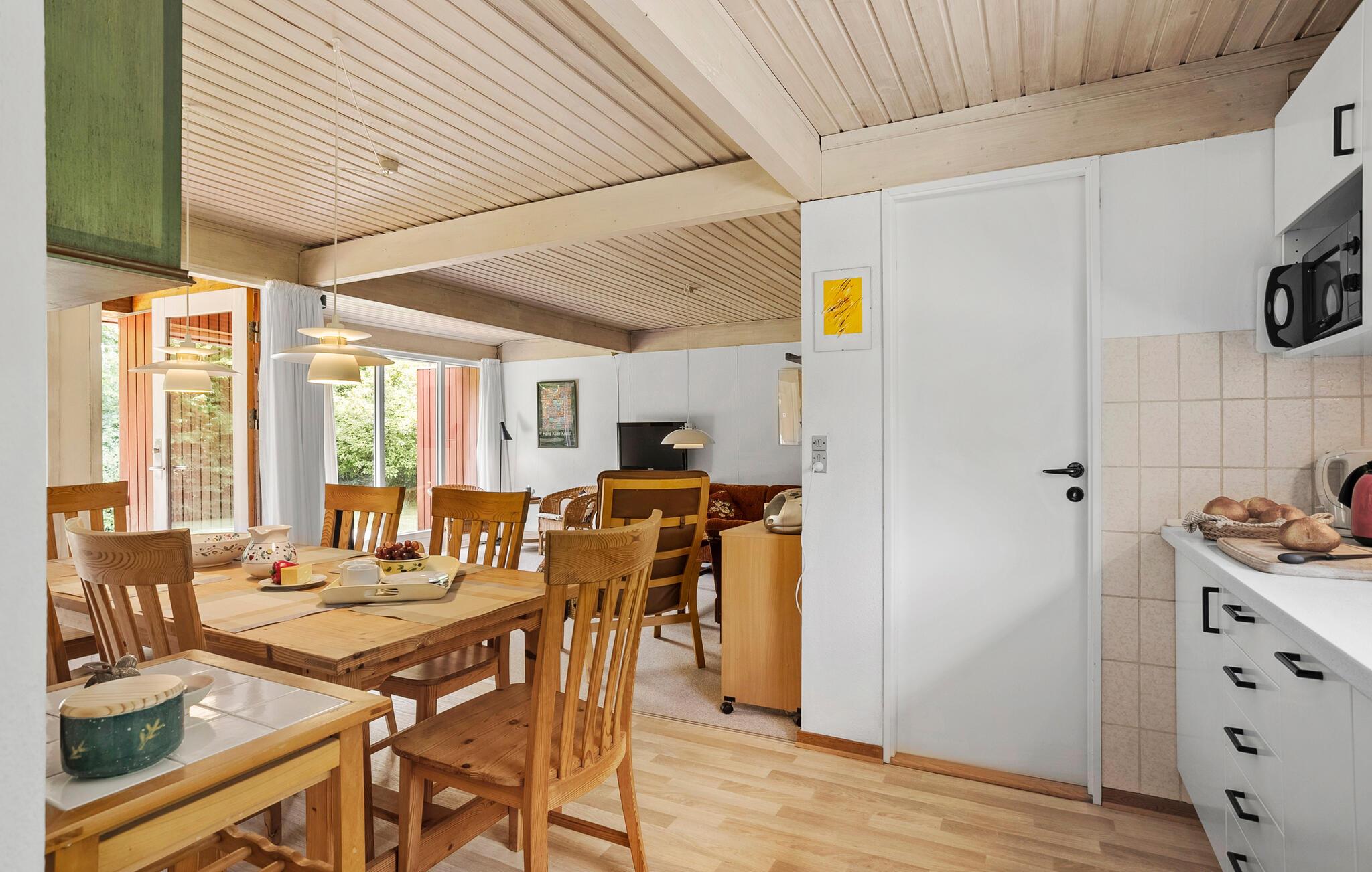 Velkommen til dette charmerende hus, som har en dejlig placering i et fredeligt sommerhusområde. Vil I en tur ned for at bade, skal I kun gå en lille tur ned gennem det hyggelige kvarter. Brug det praktiske køkken-alrum til at tilberede jeres feriemåltider sammen. Spisebordet giver plads til hyggeligt samvær med hele familien. Det skønne opholdsområde lægger op til leg, afslapning og hygge. Find jer til rette i sofakrogen med en god film eller læs en sjov bog for jeres børn, mens brændeovnen sørger for hygge og varme i de kolde måneder.