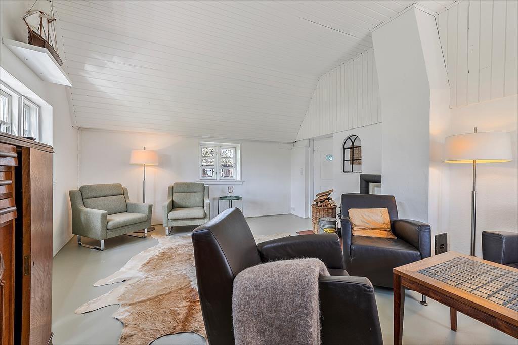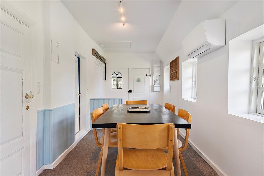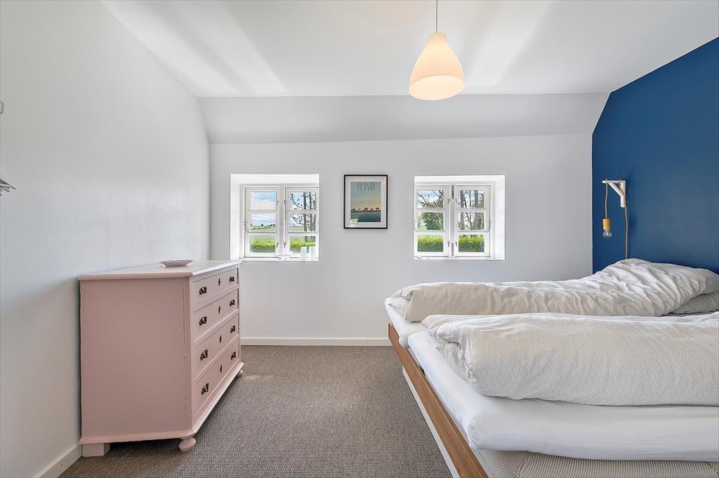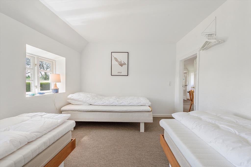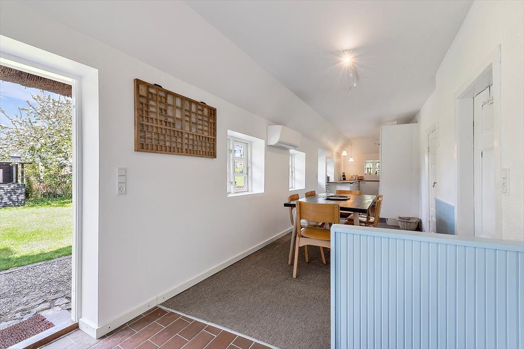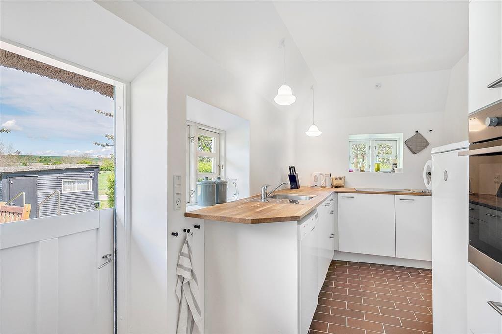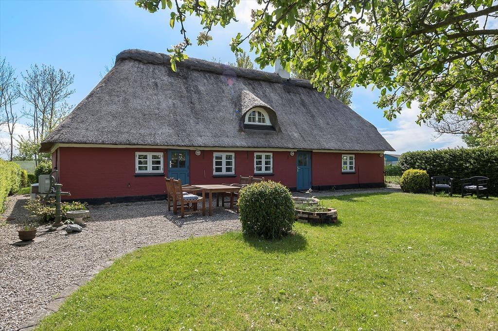 Træd ind i dette smukke landsbyhus, der oser af ægte ærøsk charme. Med et traditionelt stråtag og højt til loftet stråler dette hjem af historie og moderne komfort. Det åbne køkken og spisepladsen er hjertet i huset, hvor I kan nyde feriens måltider sammen. Et lyst badeværelse med vaskemaskine tilføjer praktiske bekvemmeligheder, mens den rummelige tv-stue med brændeovn indbyder til afslapning og hygge.