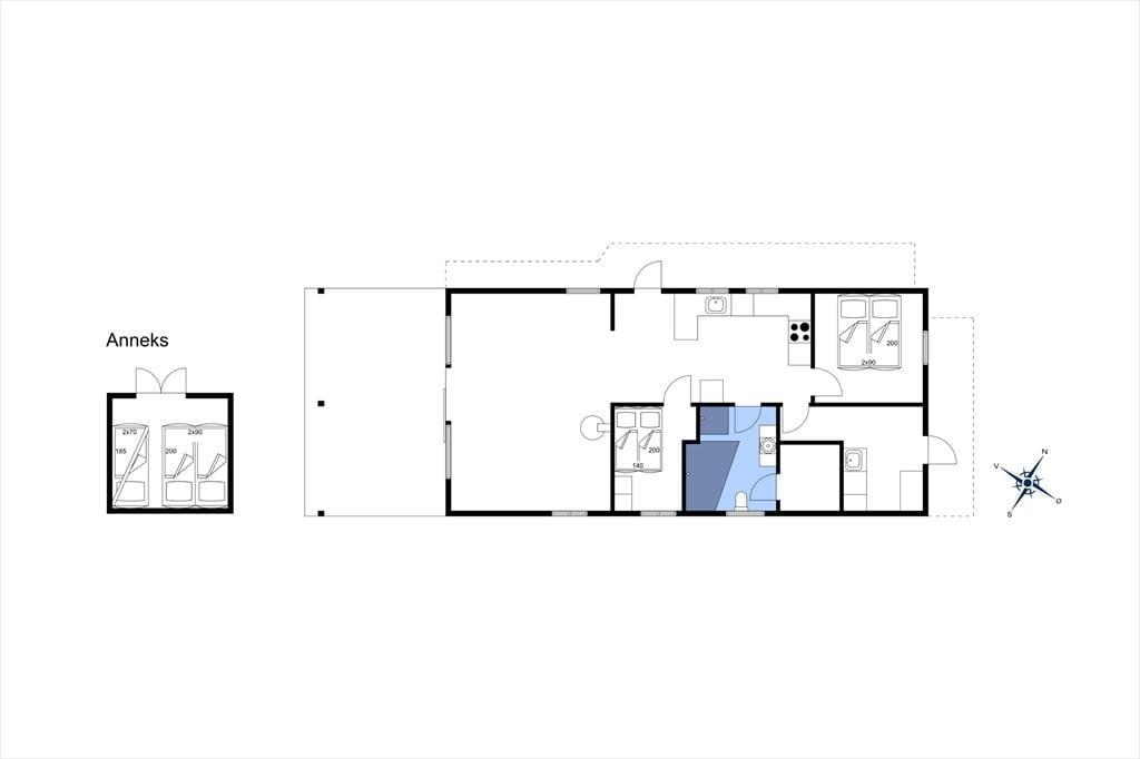 Velkommen indenfor til bindingsværksidyl og se frem til en herlig ferie i et sommerhus, hvor pladsen er helt rigtig fordelt og hvor praktik går hånd i hånd med ægte dansk hygge. Træd ind i et dejligt og veludstyret køkken, hvorfra du kan tilgå alle husets rum. Til den ene side har du en skøn stue, hvor du kan samle familien omkring spisebordet og lægge planer for dagen over morgenmaden eller tage en dyst i et af husets spil. Du kan også nyde brændeovnens varme knitren, læse historie for børnene og se en god film på Tv’et i dagligstuegemakkerne. Fra stuen er der dør til overdækket terrasse, så hvad med at tage kaffen med ud og nyd den indre ro, mens børnene boltrer sig på græsplænen. Fra køkkenet er der adgang til 2 dejlige soveværelser med dobbeltsenge, bryggers med vaskemaskine og plads til barnevognen samt dejligt badeværelse med spa og sauna. Det er da hygge og praktik i skøn forening. Herudover anneks med dobbeltseng og køjeseng. Her er radiator, men annekset er mest brugbart forår, sommer og efterår.