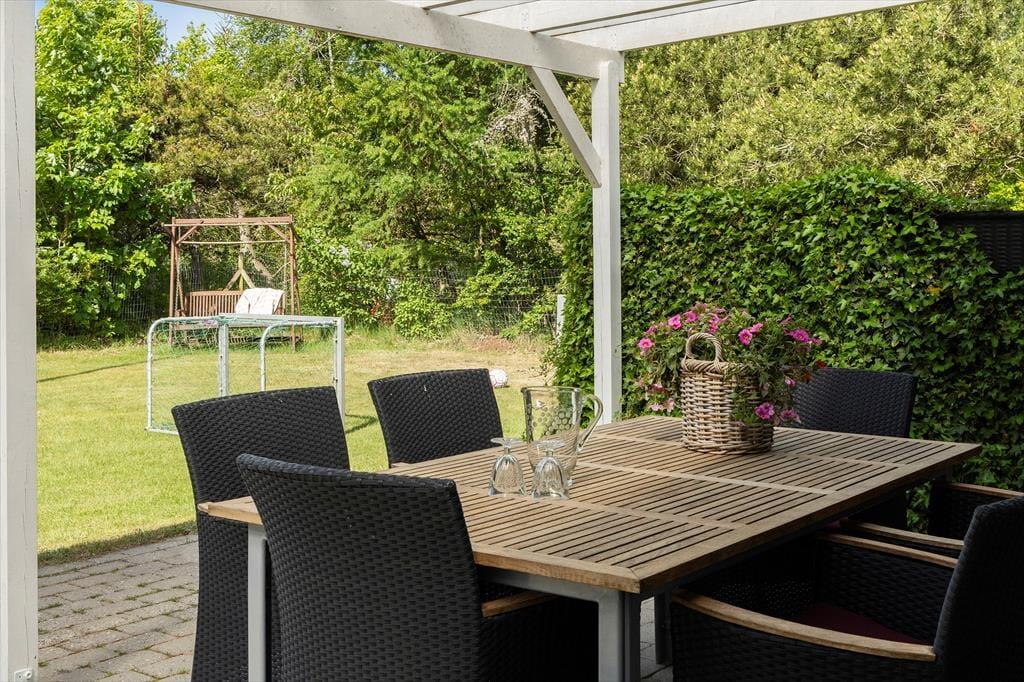 Nyd livet udenfor En skøn have der opfordrer til leg og aktivitet. Her er trampolin, gynger og sandkasse til de yngste og haven er lukket, så du kan bevare overblikket over både børn og hunde. Får du lyst til en mundfuld havluft eller en dukkert, så er der blot 550 meter til den dejlige strand, der er børnevenlig og minder om Vadehavet.