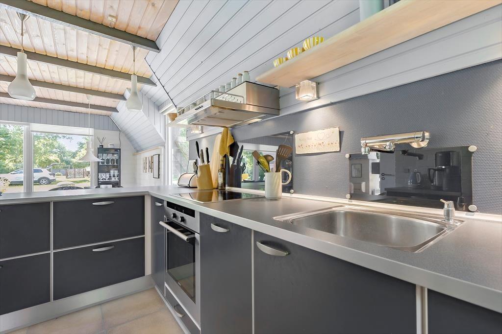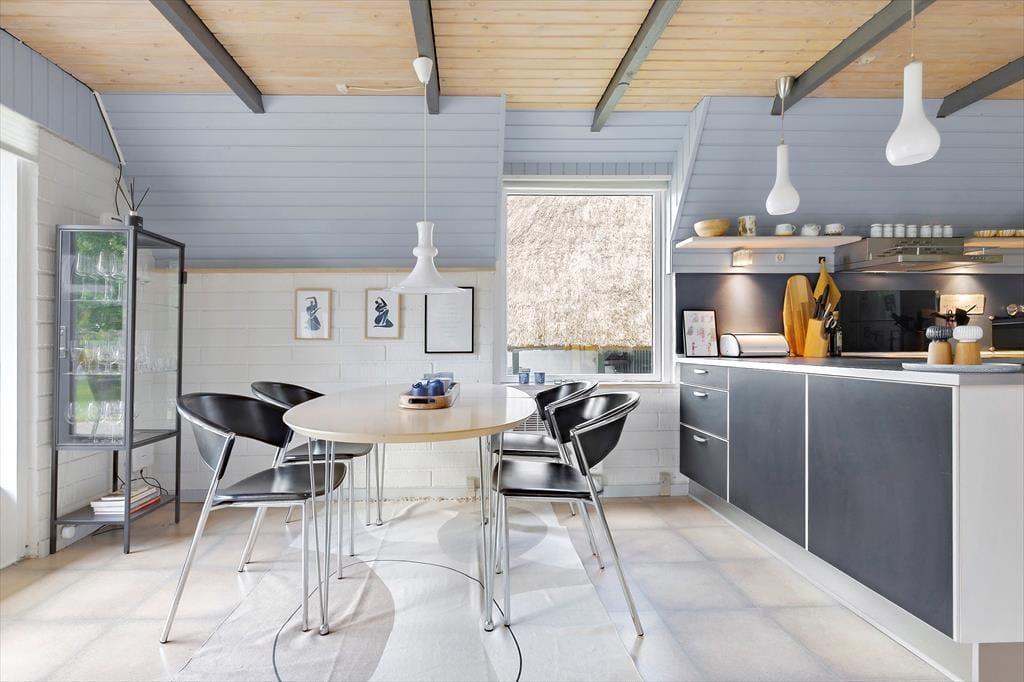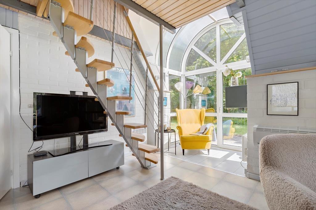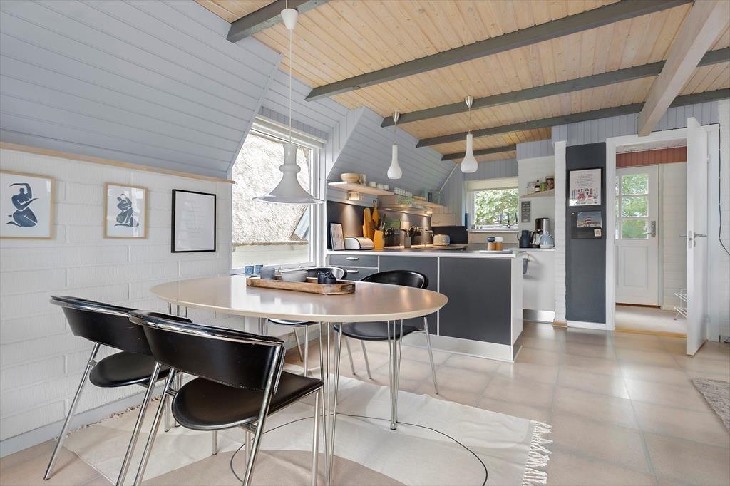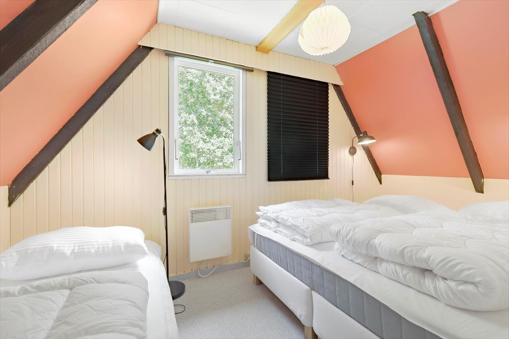 Charmerende sommerhus på en stille stikvej i et hyggeligt sommerhusområde, hvor der er fred og ro. Med kun 600 meter fra børnevenlig badestrand og omgivet af smuk natur, er det det ideelle sted for en afslappende ferie eller kærestetur. Sommerhuset er i to plan og er istandsat med flotte farver. På første sal er der to gode soveværelser, hvoraf det ene har udgang til en dejlig altan. I stueetagen er der et flot og nyere køkken og en hyggelig stue med brændeovn og TV til de dage, hvor du har lyst til det. Her er der både spiseplads og sofamiljø, hvor du kan hygge dig med at tegne, spille spil og læse. Badeværelset er ældre og funktionelt. I skuret er der ekstra fryser, vaskemaskine og tørretumbler.