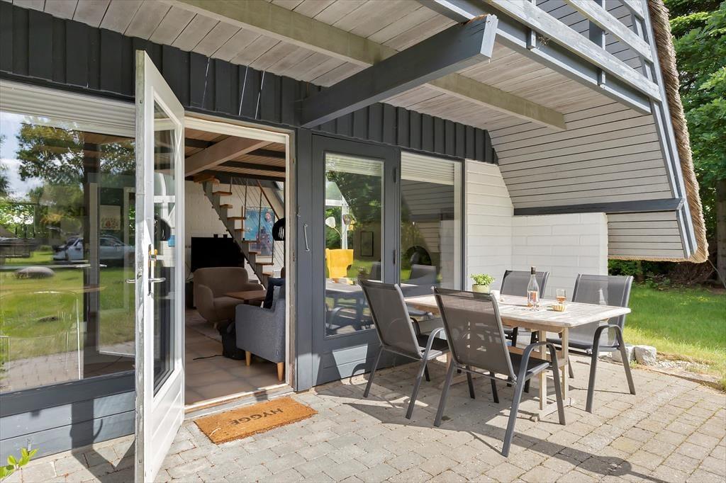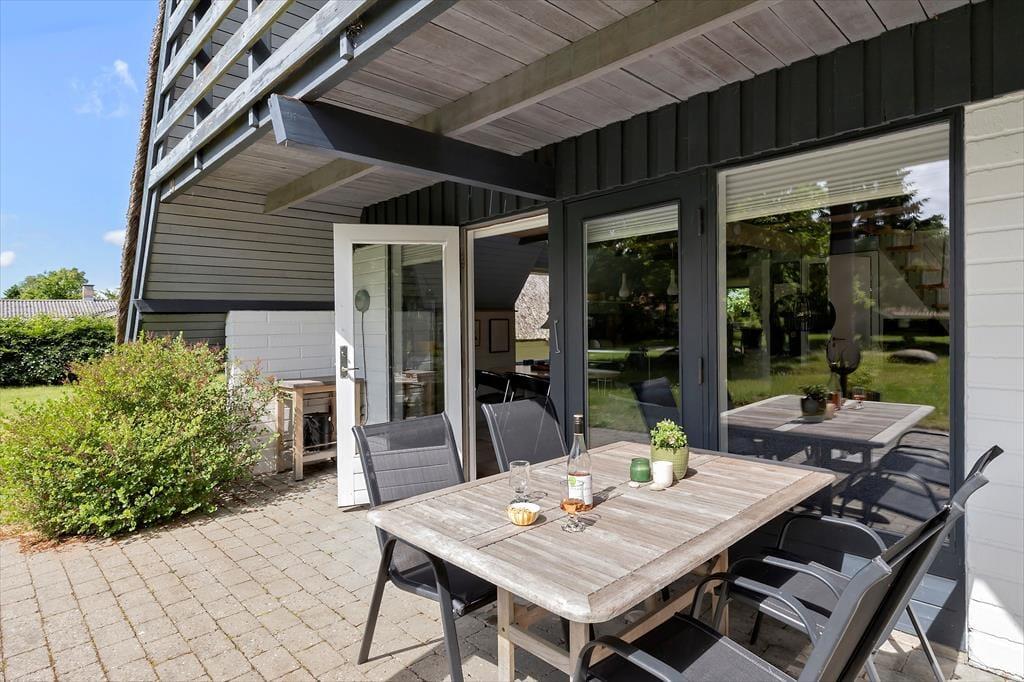 Udenfor er der en hyggelig og herlig terrasse, hvor du kan nyde solen og de dejlige grillaftener. Haven er plan og har en fin græsplæne, hvor du kan slappe af på et tæppe og kigge op i himlen eller udkæmpe alverdens familiedyster.