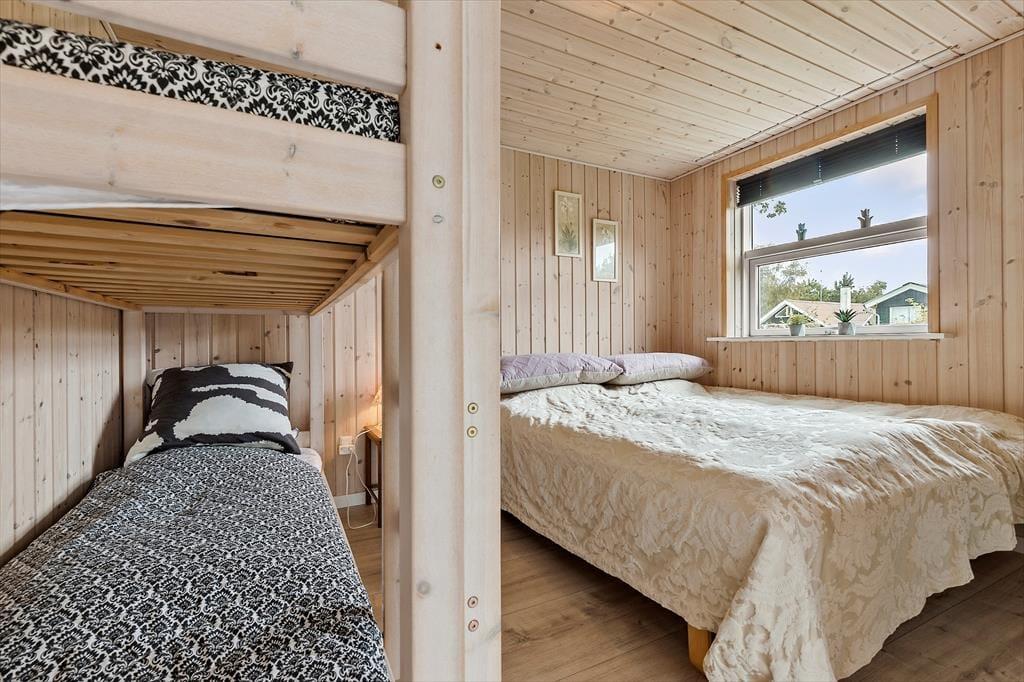 Velkommen indenfor Forestil dig at træde ind i dette dejlige feriehus i Store Sjørup, hvor du straks møder en atmosfære af hygge og afslapning. Huset har et åbent og lyst køkkenalrum, der er familiens naturlige samlingssted, med moderne faciliteter og masser af plads til at lave måltider sammen. Det helt særlige ved huset er den nye udestue, der er rummelig og inviterer til nærvær og hygge. Med sine store vinduer, lyse trævægge og moderne møbler er det et perfekt sted at trække sig tilbage – både om morgenen med en kop kaffe og om aftenen med en god bog. Den "rigtige" stue er også dejlig og her kan du nyde brændeovnens hyggen og varmens. De tre soveværelser er alle indrettet med tanke på en god nattesøvn. Ét værelse har en dobbeltseng, mens de to andre har enkeltsenge, så hele familien kan sove godt efter en dag fyldt med oplevelser. Og hvis I har gæster med, byder annekset på ekstra plads med dobbeltseng, køjeseng og eget badeværelse – en perfekt lille afskærmet del til gæster, store børn og lille familie.