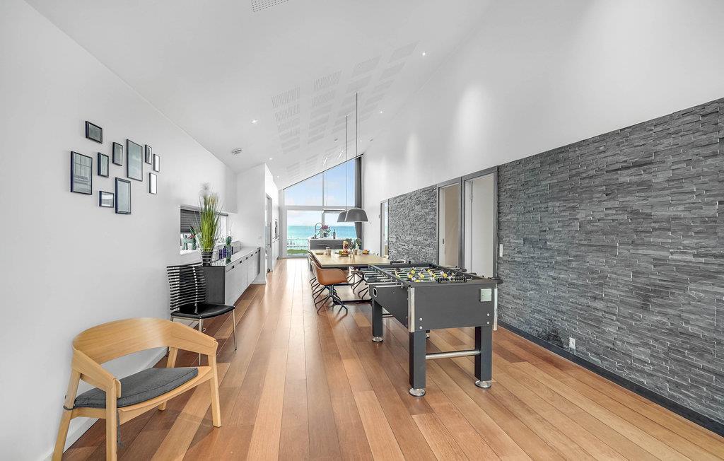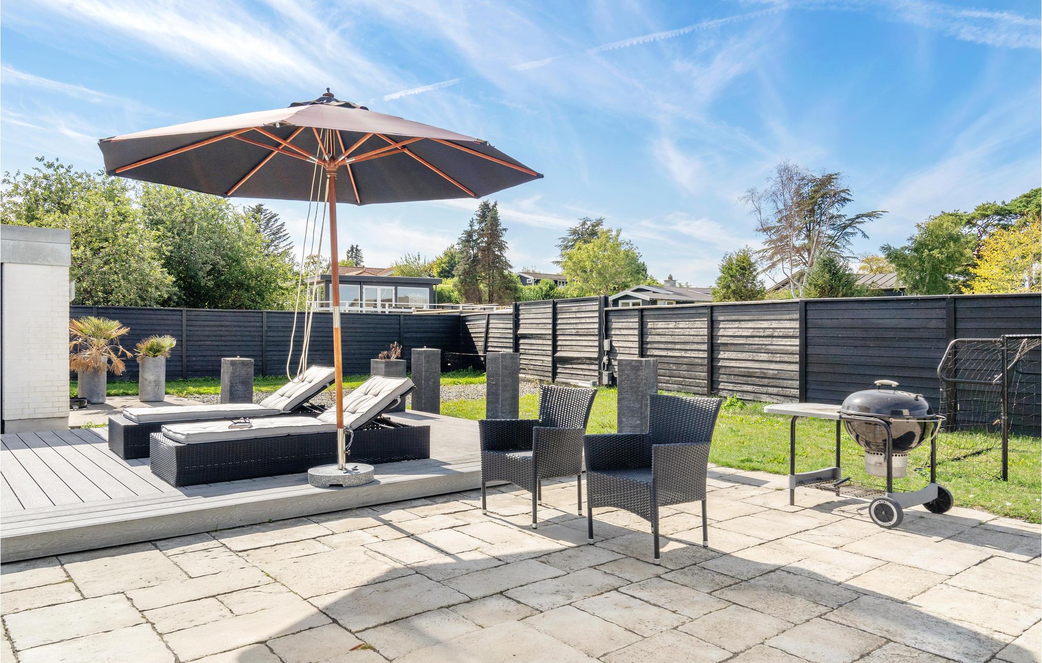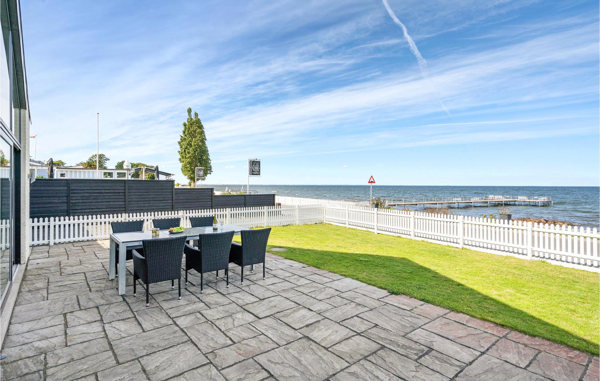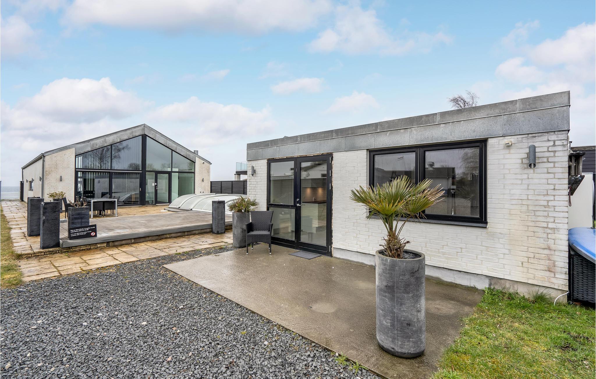 Huset er bygget i de bedste materialer og henvender sig til den kræsne gæst. Her er udsigt til vandet fra både stue, køkken og soveværelse. Stor lækker terrasse med udendørs pool og gode havemøbler. Her kan du helt ugenert nyde de lange sommeraftener og tage en dukkert i den opvarmede pool. Køkkenet er udstyret med alt i moderne hjælpemidler. Stuen er med moderne møbler, og herfra er der udgang til terrassen. Annekset i baghaven indeholder to seperate soveværelser og et badeværelse. Ikke mindre end to badeværelser er der i hovedhuset, hvor der er badekar og tv i det ene. Et virkelig lækkert hus, hvor der er tænkt på det hele. Poolen er til rådighed fra april til ultimo oktober.