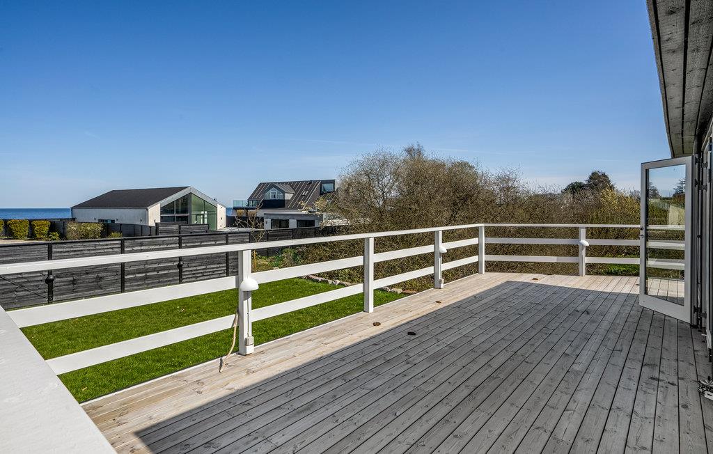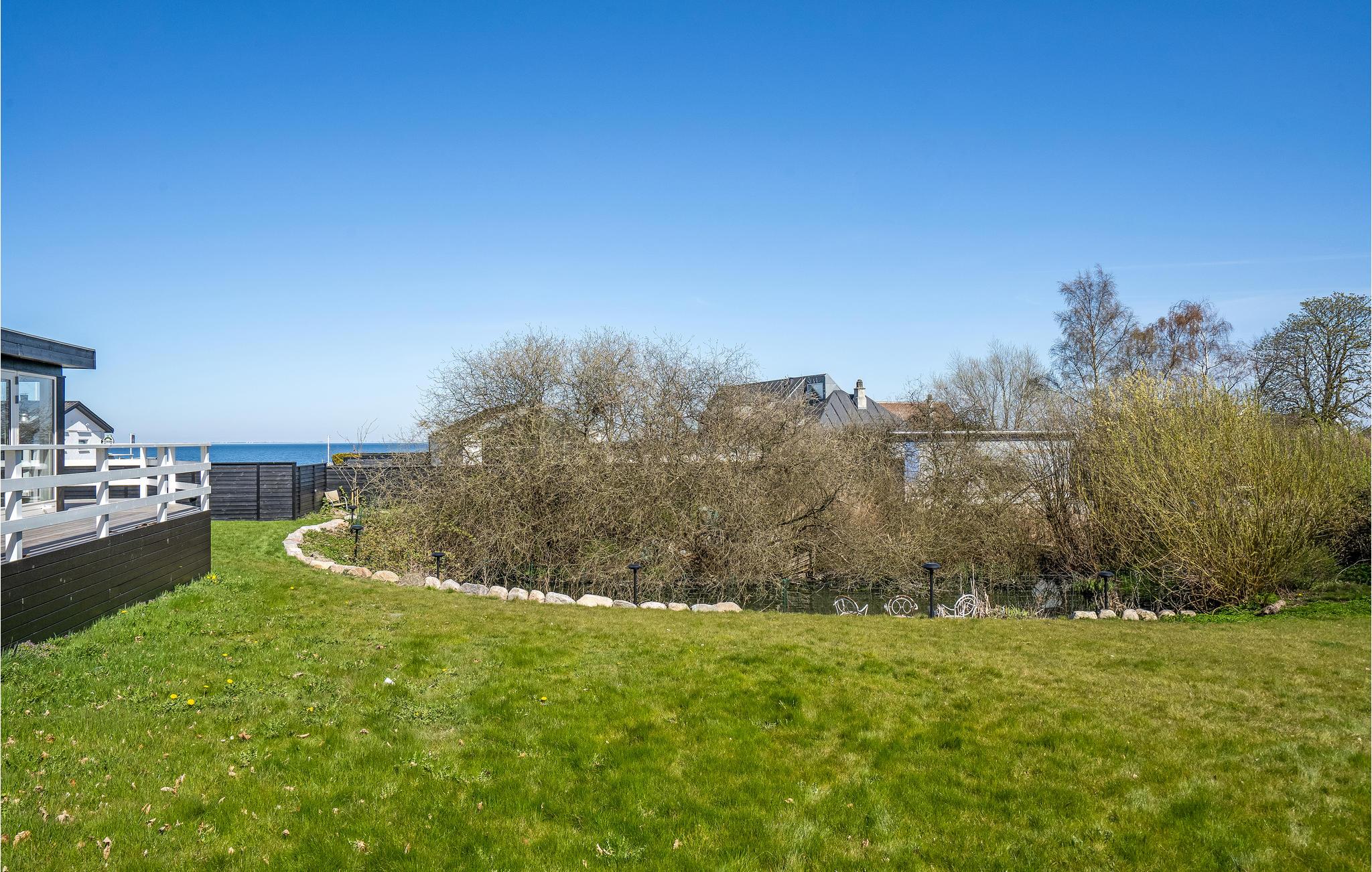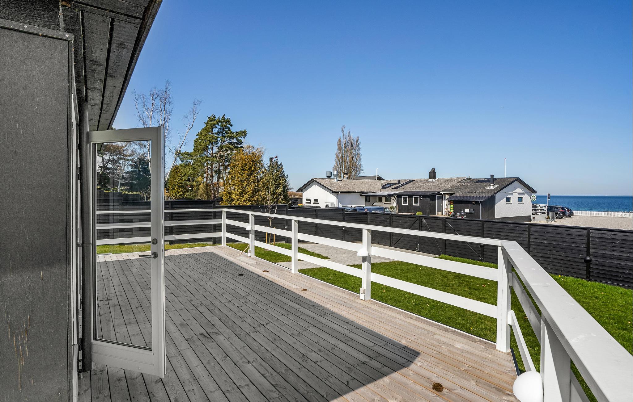 Terrassen er ideelt sted til en brunch i det fri, mens I nyder den skønne udsigt til havet. Børnene har masser af plads til at lege på græsplænen.