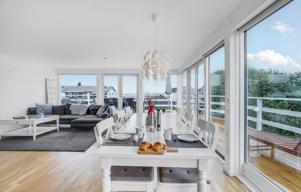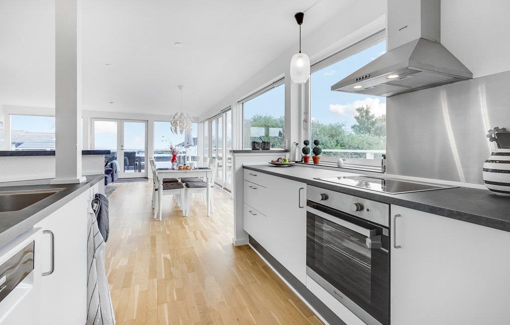 Store vinduespartier sikrer et godt lysindfald i stuen lys, og så er her en fantastisk udsigt. I får derfor skønne rammer om måltiderne og en rolig stund i sofaen.