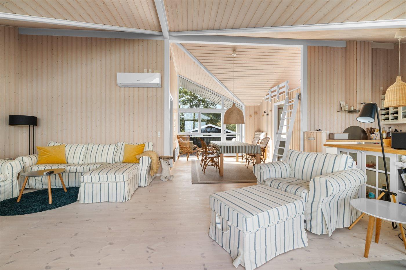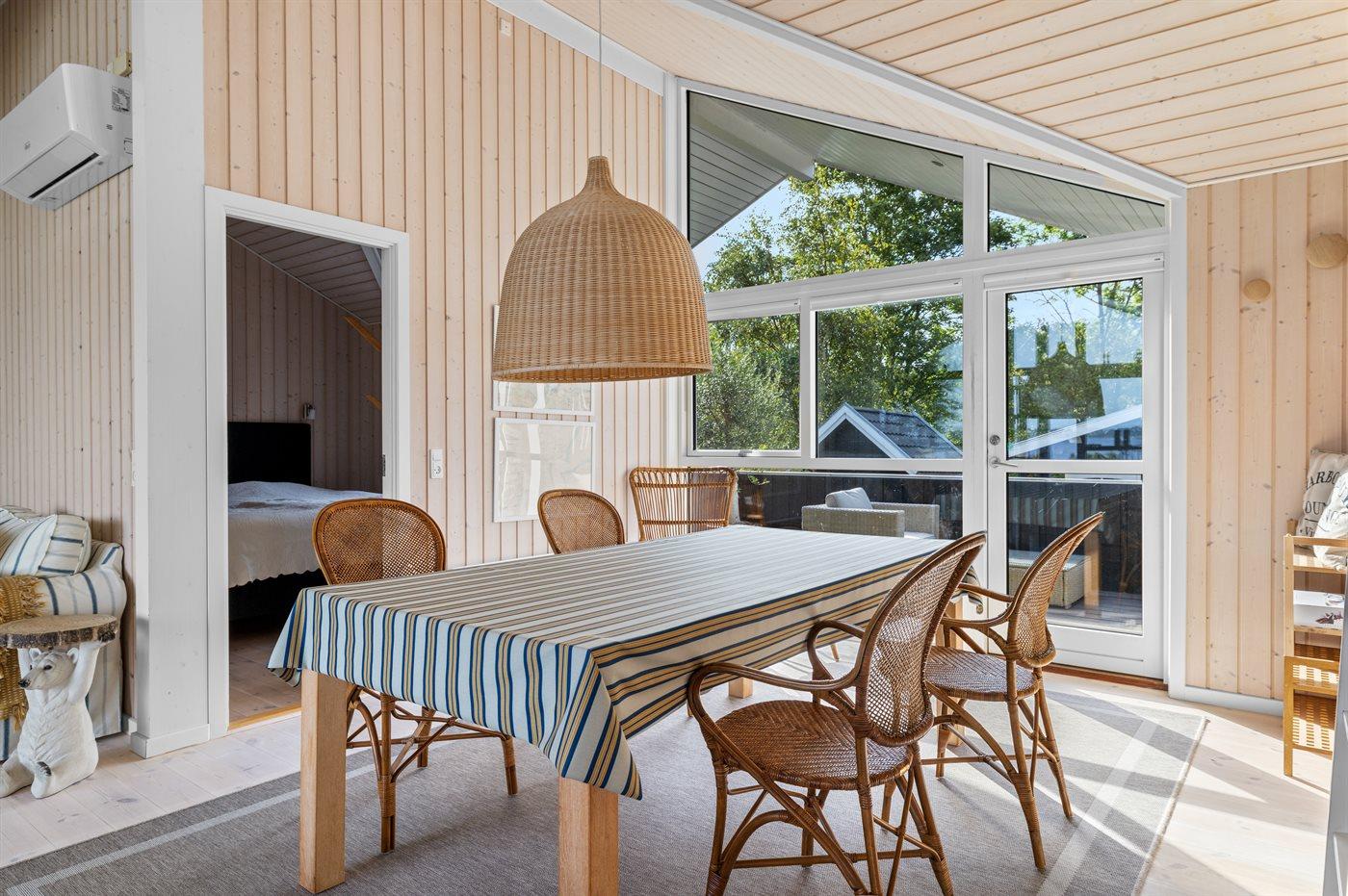 Huset er moderne og hyggeligt indrettet og indeholder ud over soveværelset en god hems, hvor du finder to sovepladser. Disse to sovepladser er grundet adgangsforholdene nok bedst egnet til et par unge mennesker.