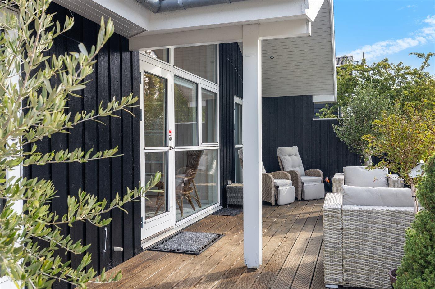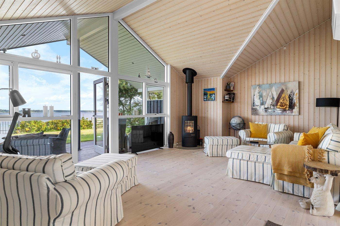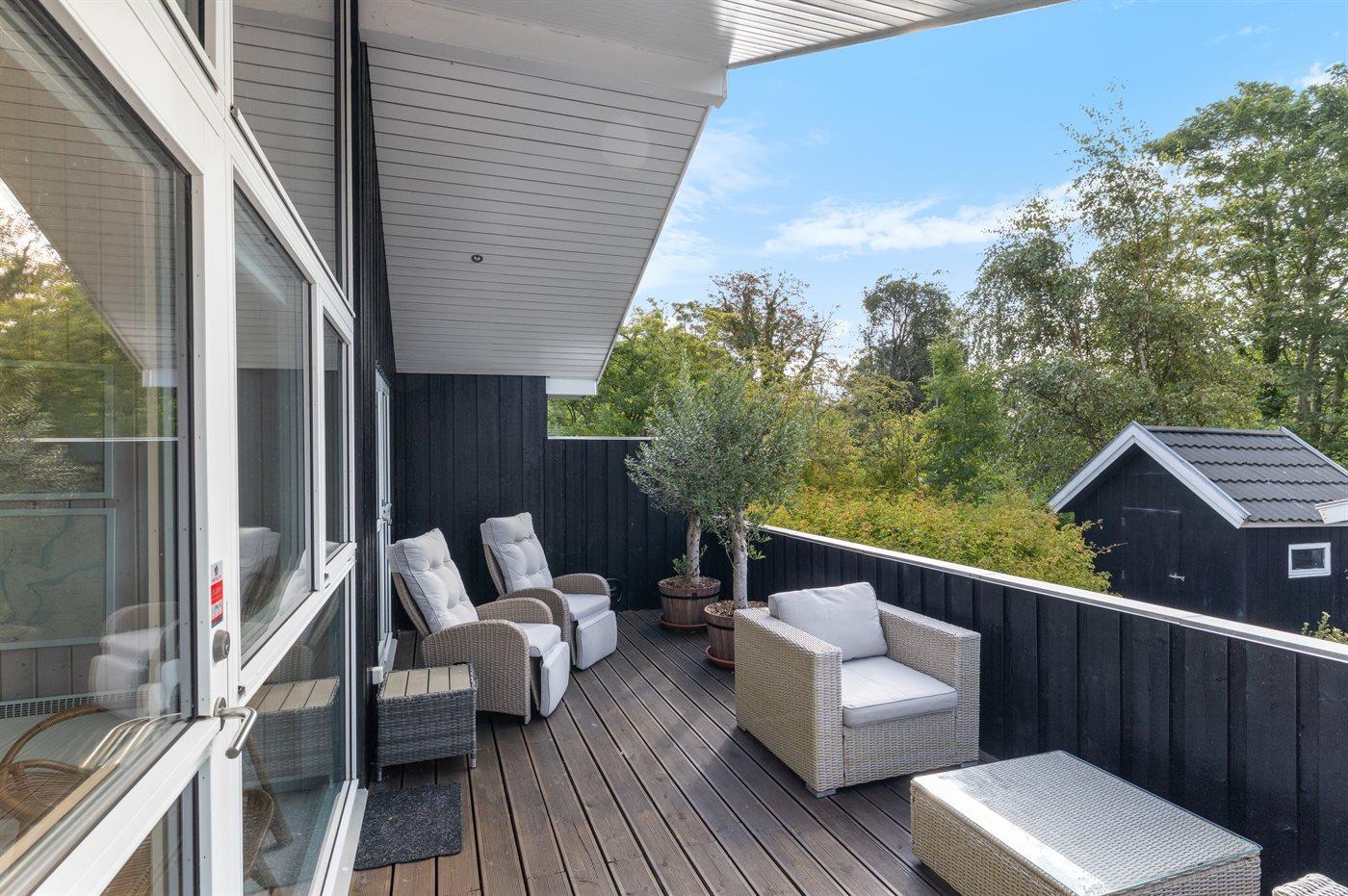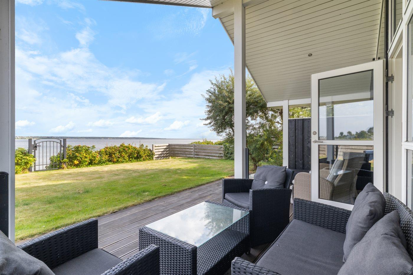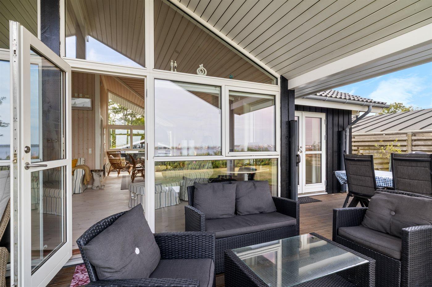 Fra både huset og terrassen foran huset, er der den flotteste udsigt ud over Lillebælt og området. Bag huset findes der en god terrasse med læ på dage med blæsevejr.