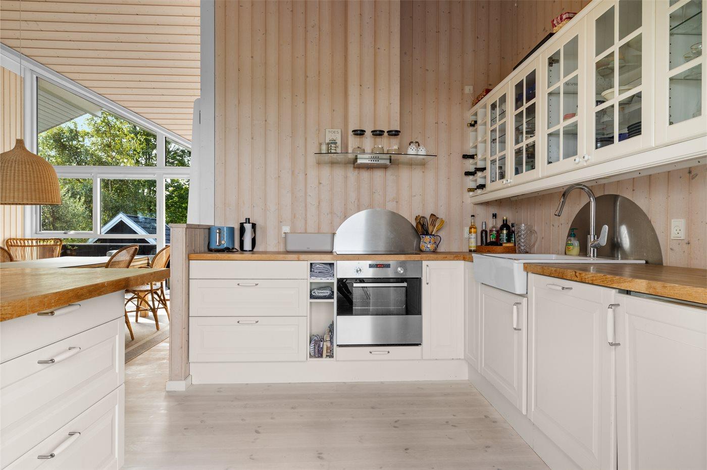 Køkkenet er udstyret med 1 køleskab. Der er 4 keramiske kogeplader, varmluftovn samt opvaskemaskine.
