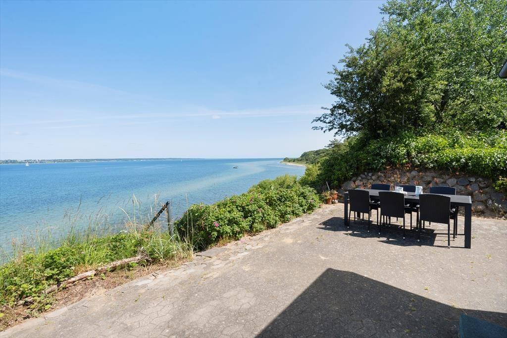 Dette sommerhus på Dæmningen 99 i Strib tilbyder en ferieoplevelse ud over det sædvanlige. Her bor du med den mest fantastiske udsigt over Lillebælt, og med en privat trappe fra terrassen har du direkte adgang til stranden. Det er det perfekte sted for dig, der drømmer om en ferie i første parket til havet, hvor du kan slappe af og nyde det unikke kystmiljø.
