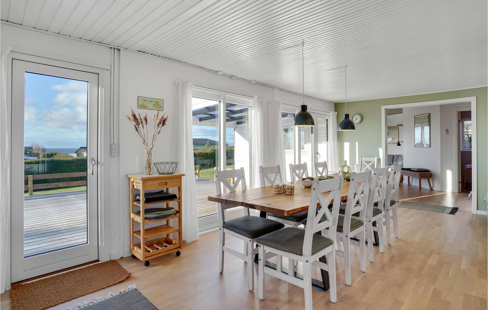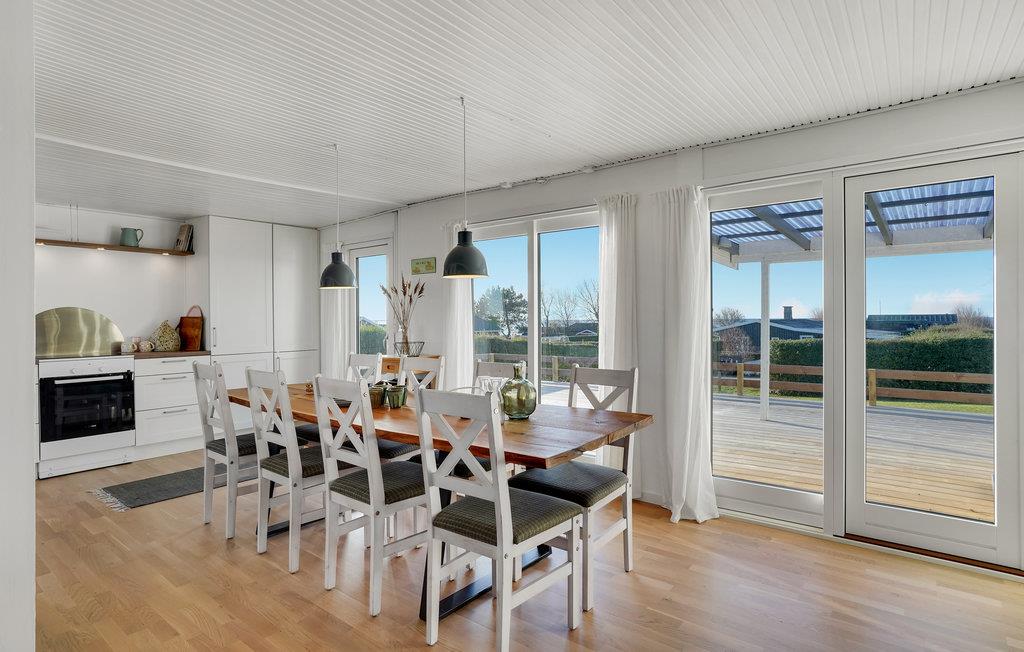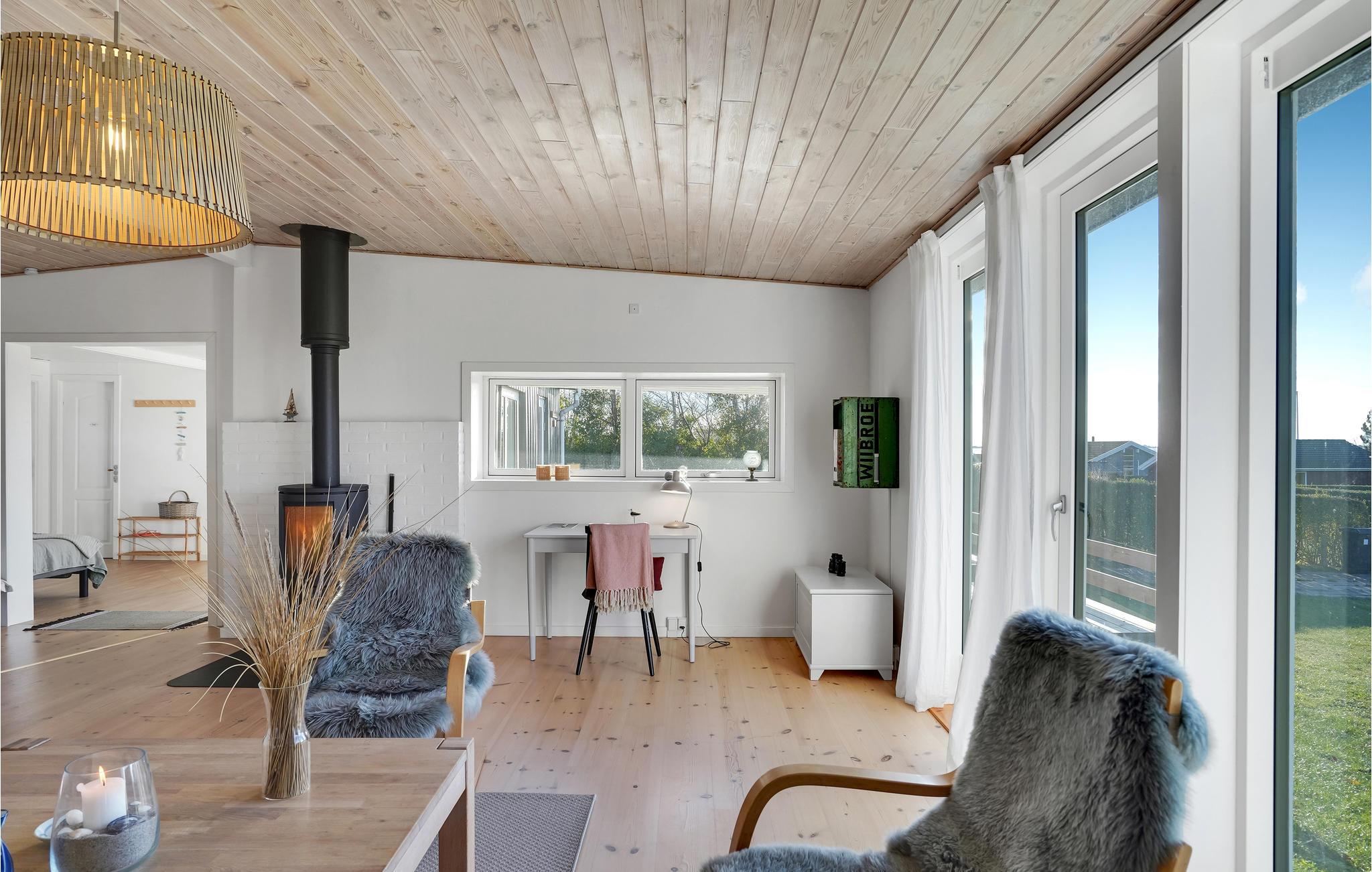 Velkommen til et yderst velindrettet hus, hvor der er lagt vægt på kvalitet, æstetik og store, åbne rum med et dejligt lysindfald. Her er det nemt at sænke skuldrene og slappe af. Nyd udsigten til Jammerland Bugt, mens aftenretterne bliver klar i køkkenet og sæt jer derefter omkring spisebordet, mens I kigger ud på den grønne have. Når I læner jer tilbage i sofaen efter en lang dag på farten, kan I nyde varmen og de knitrende lyde fra brændeovnen.
