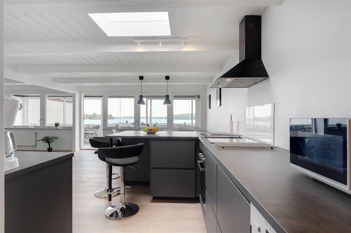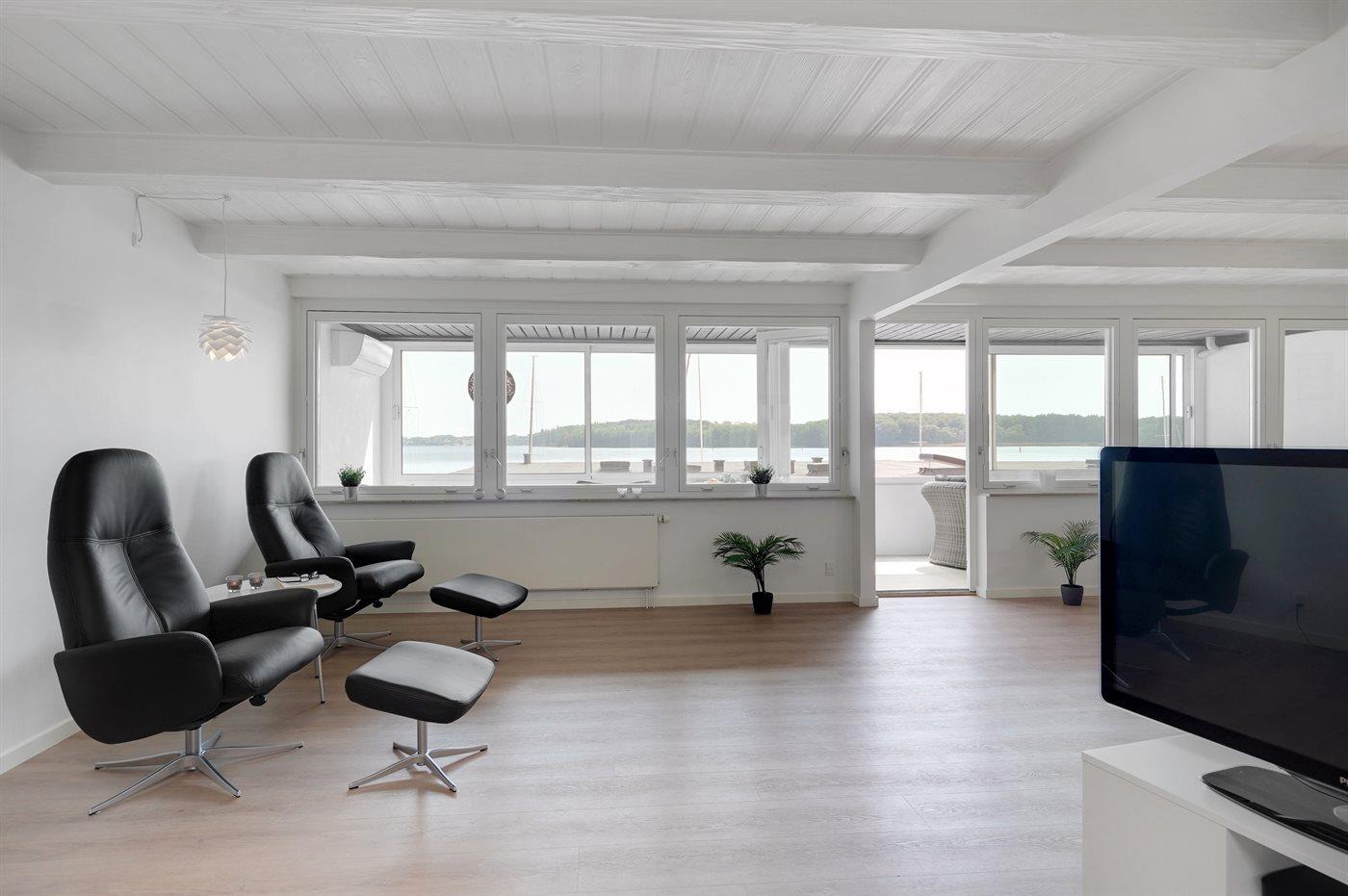 En dejlig nyistandsat lejlighed med en skøn udsigt ud over Svendborgsund! Lejligheden er en del af et større kompleks, hvor boligerne er bygget i forskudt plan, så alle har flot udsigt fra både stuen, køkken-alrum og den dejlige altan. Der er direkte adgang fra stue og køkken til altanen, som er lukket og udstyret med sin egen varmepumpe, så den kan benyttes hele året. Lejligheden ligger tæt på marina, strand, natur og Svendborg by, som kan nås i gåafstand. Der er også i gåafstand adgang til skov med stisystem, hvor der også er mountainbike- og løberuter. Bemærk, at trappen imellem de to plan, ikke er velegnet for gangbesværede. Parkering enten ved boligen eller på fælles parkeringsområde ved starten af vejen.