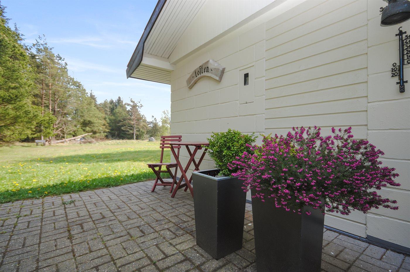 Ferieboligen er beliggende på en 5000 m² stor naturgrund. Der er 3000 m til havet. Nærmeste forretning er beliggende i en afstand af 3000 m. Til ferieboligen hører 30 m² terrasseareal. Desuden er der 18 m² overdækket terrasse. Der er redskabsrum. Gynge. Sandkasse. På lune aftener sørger en udendørs pejs for hyggelig stemning. Parkering ved ferieboligen.