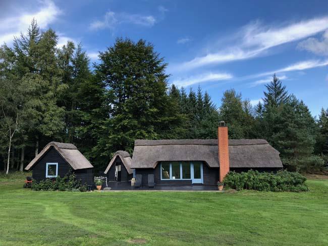 Oplev fred og natur i et charmerende stråtækt sommerhus midt i skoven ved Svinkløv.