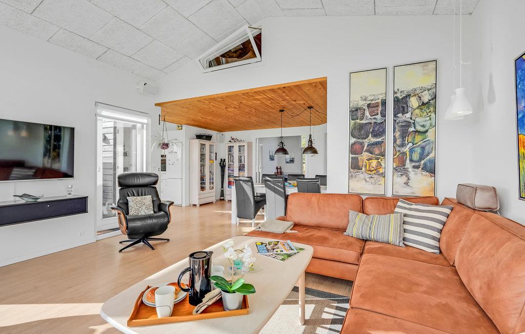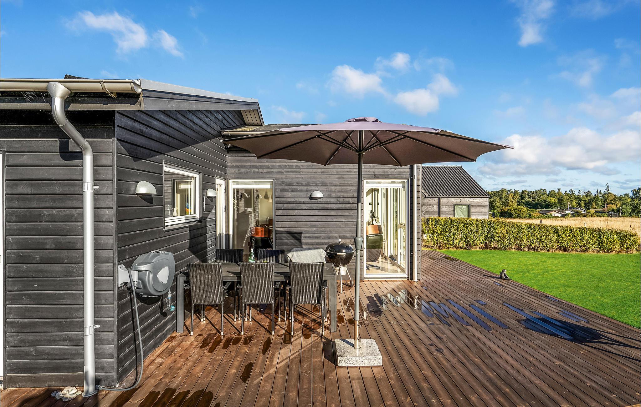 Nyd god komfort i dette feriehus med spabad nær den børnevenlige Tårup Strand.