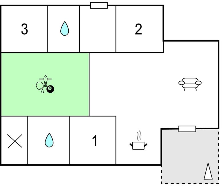 Soveværelse 8m2 (nr. 3) - 1 Soveplads. (Enkeltseng(e)). 3 Sovepladser. (Etageseng(e)).