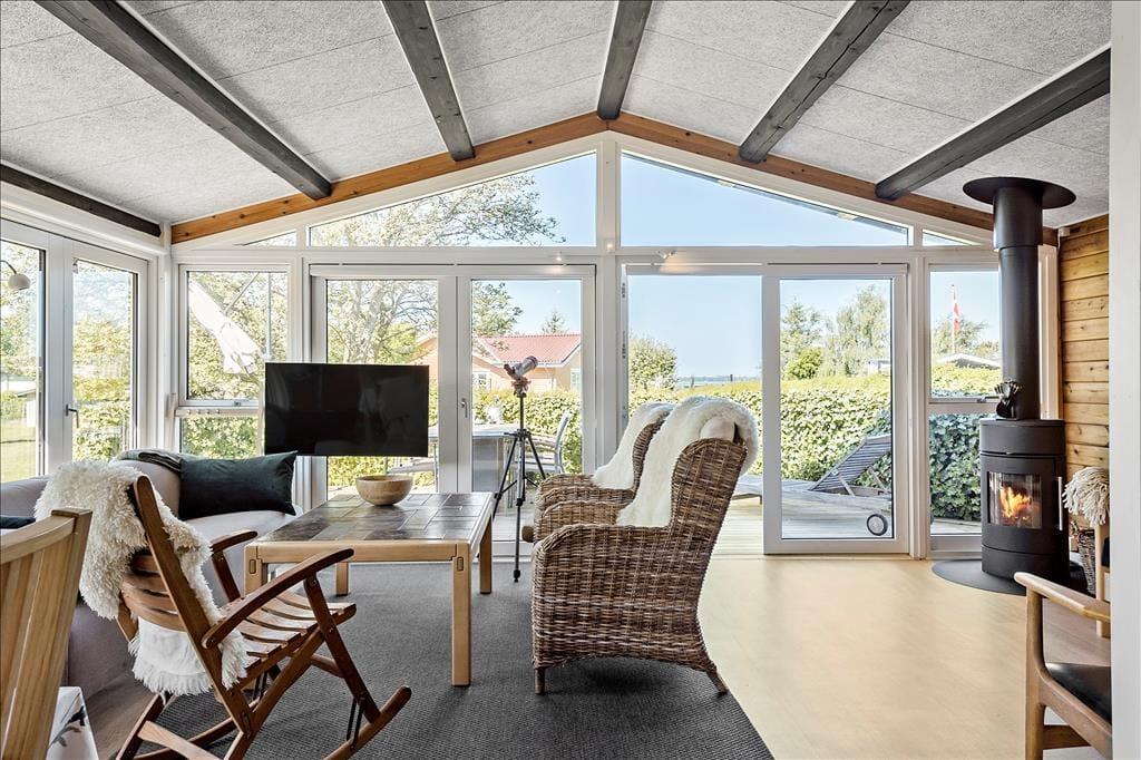 Hyggeligt bjælkehus beliggende på en dejlig grund kun i 3. række til vandet med havudsigt fra grunden. Huset blev renoveret i 2021 og er indrettet med et flot nyt køkken med nye hård hvidevarer. Køkken og stue er ud i et, og har et stort glasparti ud til terrassen, som vender mod haven og vandet. Fra stuen er der udgang til terrassen, hvor man kan sidder og nyde en god middag med udsigt til naturen og Lunkebugten Derudover er der et badeværelse samt 2 soveværelser med helt nye senge - henholdsvis 1 dobbeltseng og 2 senge. Fra terrassen har man adgang til et dejligt anneks. Annekset som også er nyrenoveret, med bla helt nyt gulv og loft, er holdt i samme rengøringsvenlig stil som huset, og her finder man endnu et soverum med to nye 2 senge. Huset er omgivet af en flot have med gynger til børnene.