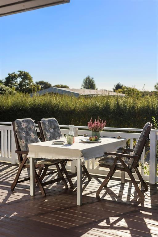 Den dejlige have omkring sommerhuset er en ægte oase, hvor du kan nyde lange dage i solen. Med frugttræer, der bugner af lækkerier, mens du slapper af på terrassen med en kop kaffe. Den delvist overdækkede terrasse er perfekt til både morgenmaden under åben himmel og sene sommeraftener med grillmad og hyggeligt samvær. Bare en kort gåtur fra huset finder du den børnevenlige sandstrand, hvor børnene kan lege i det bløde sand og plaske i det lave vand. Det er et ideelt sted for hele familien, hvor du kan nyde solen, havet og hinandens selskab.