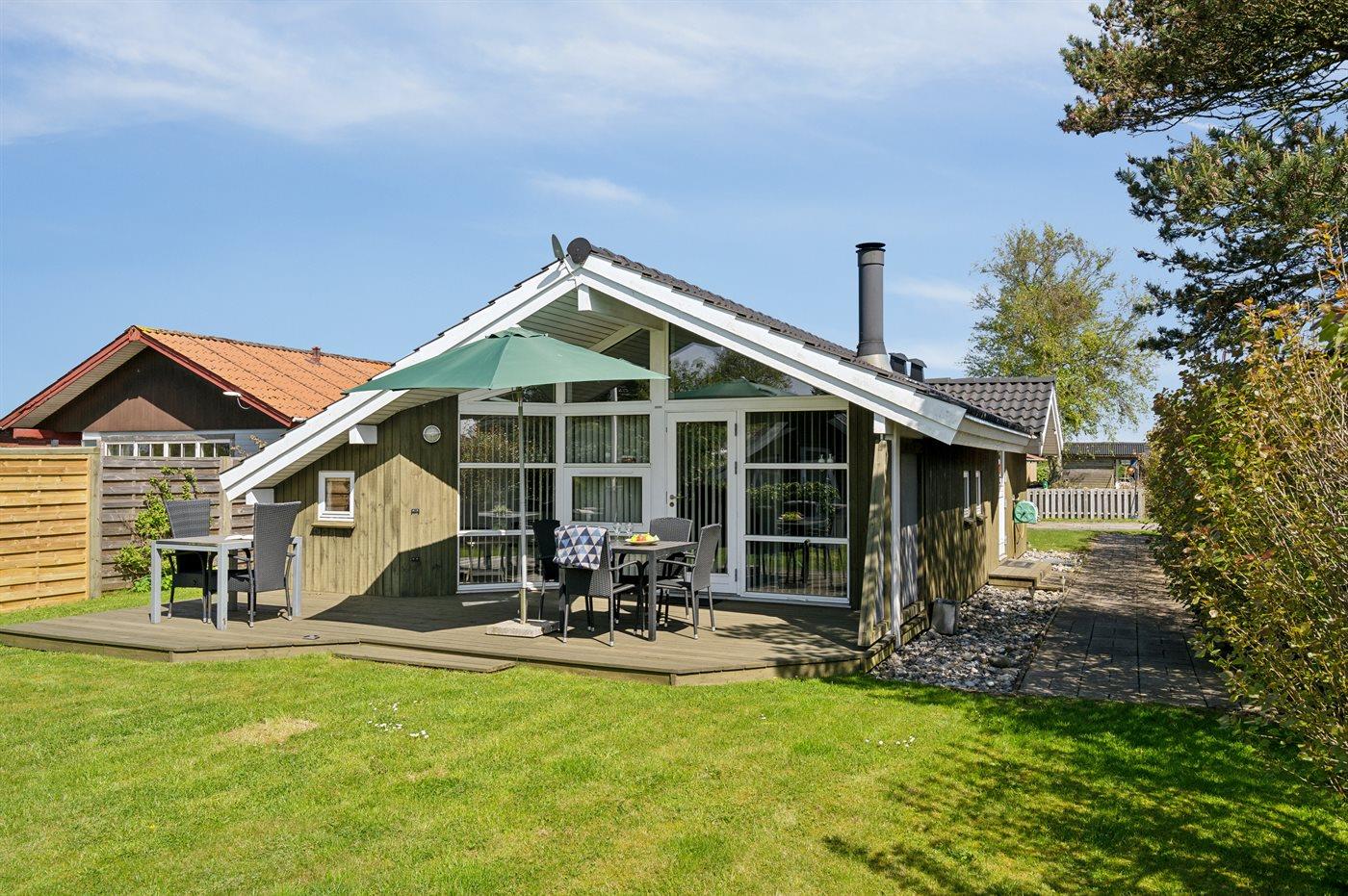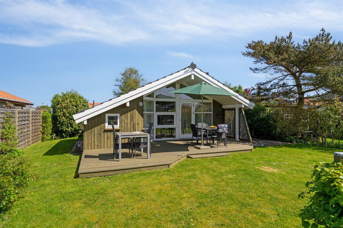 Ferieboligen er beliggende på en 410 m² stor havegrund. Der er 100 m til havet. Nærmeste forretning er beliggende i en afstand af 2500 m. Til ferieboligen hører åbent terrasseareal. Desuden er der overdækket terrasse. Gynge. Grill til rådighed. Parkering ved ferieboligen.