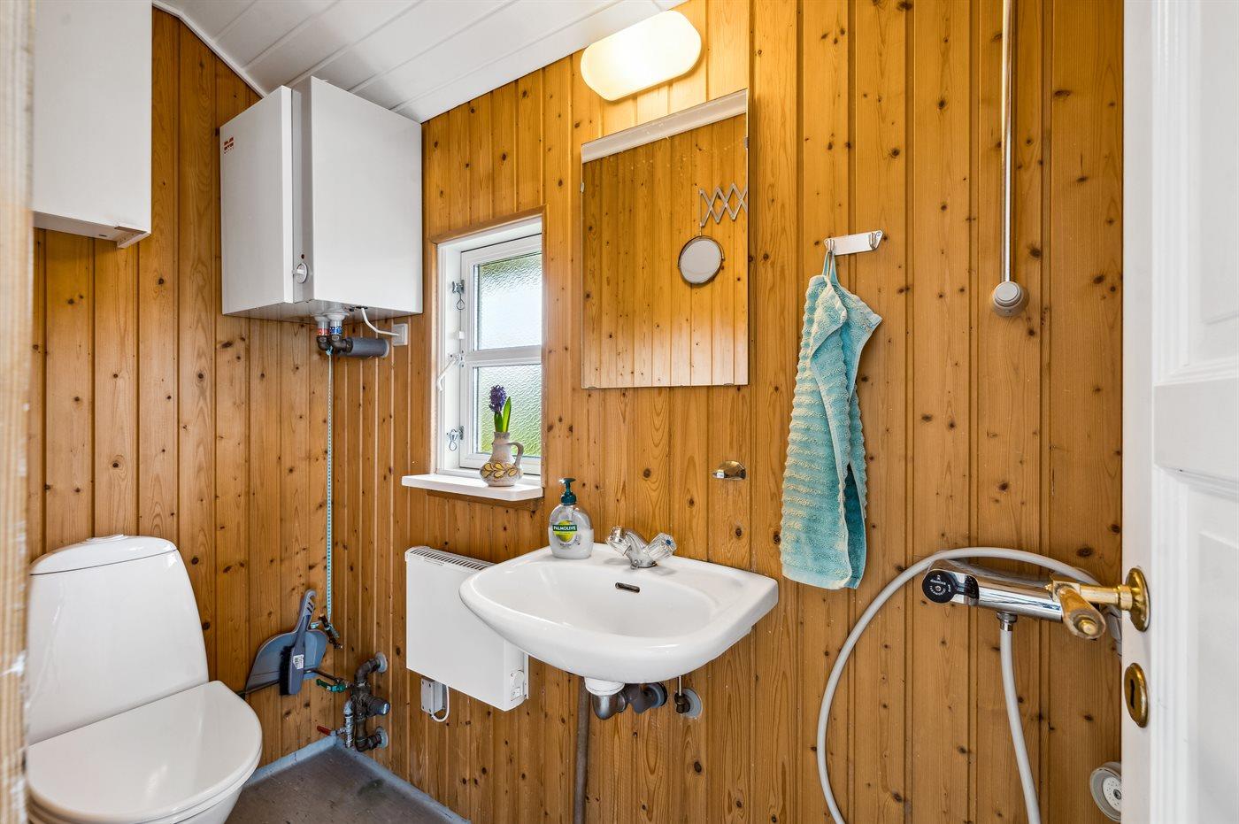 Der er 1 badeværelse med bruser og 2 toiletter, heraf 1 gæstetoilet.