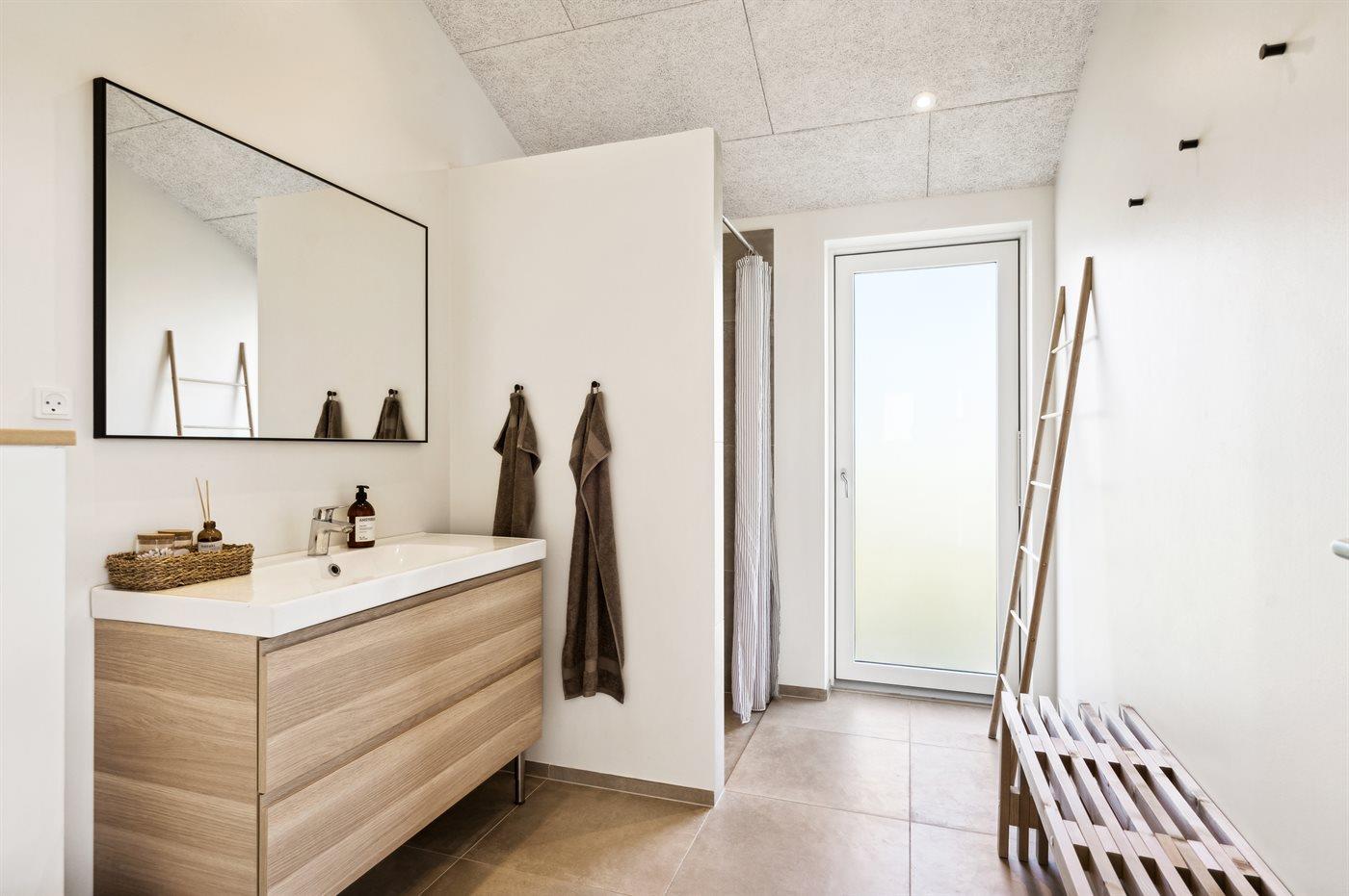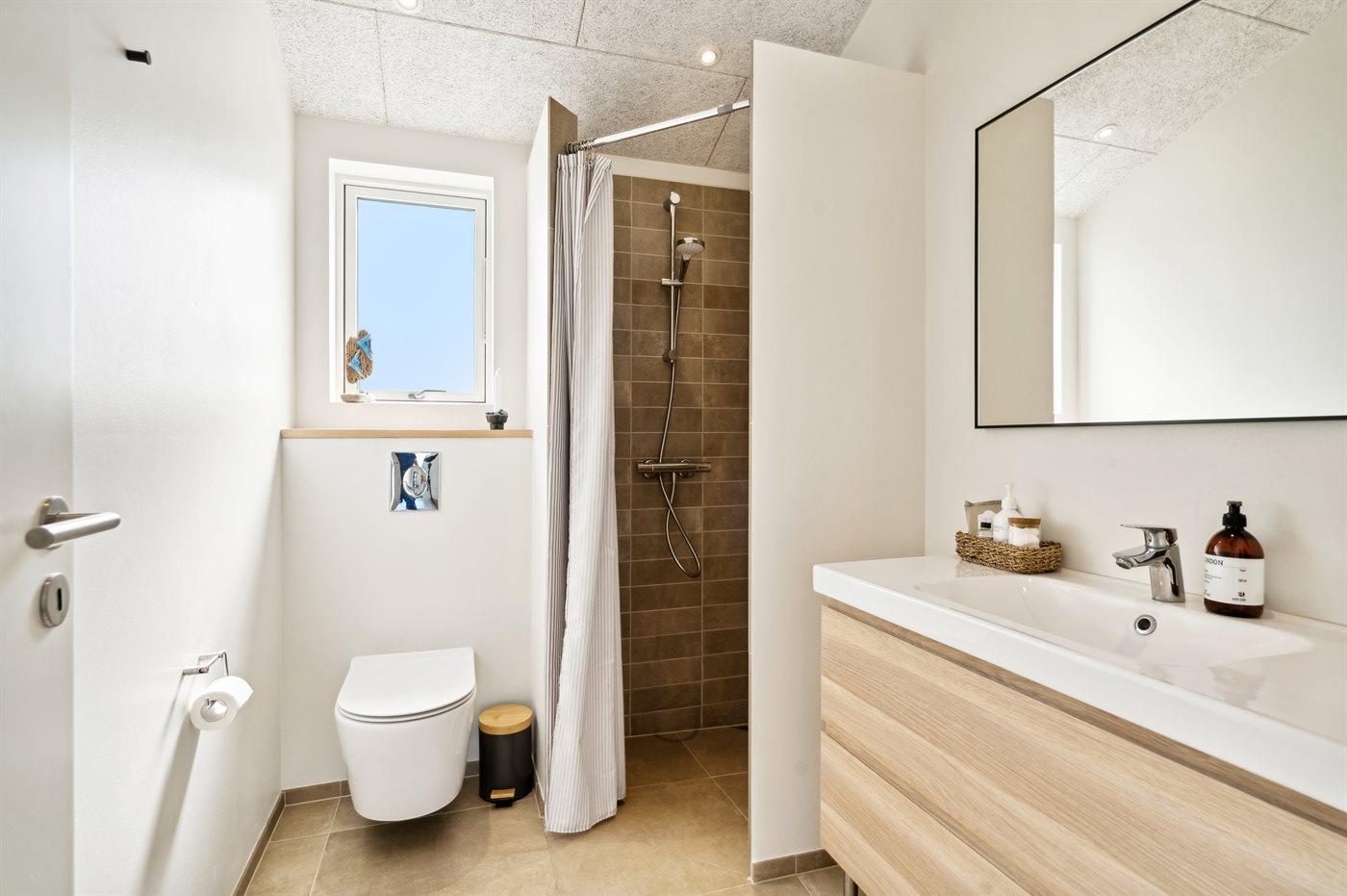 Der er 2 badeværelser med bruseniche og 2 toiletter. Der er gulvvarme på 2 badeværelser.