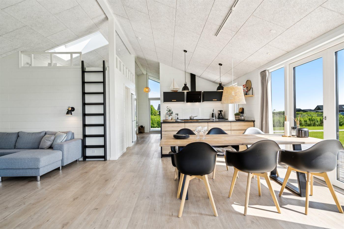Et dejligt sommerhus, bygget i 2022, med en rummelig indretning og flere skønne terrasser omkring huset. Huset er lyst og indbydende og opført i kvalitetsmaterialer.