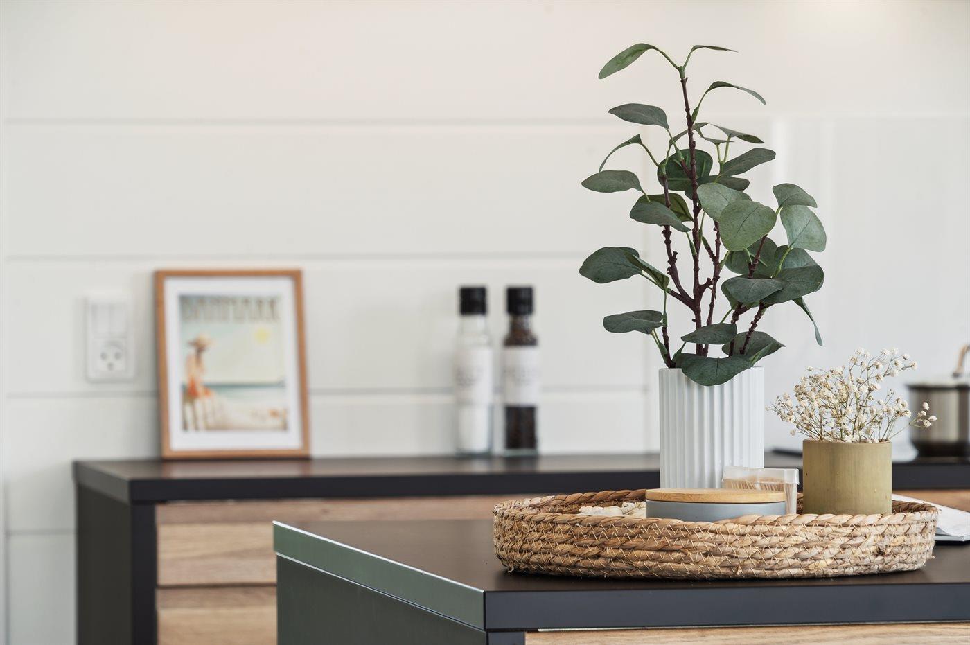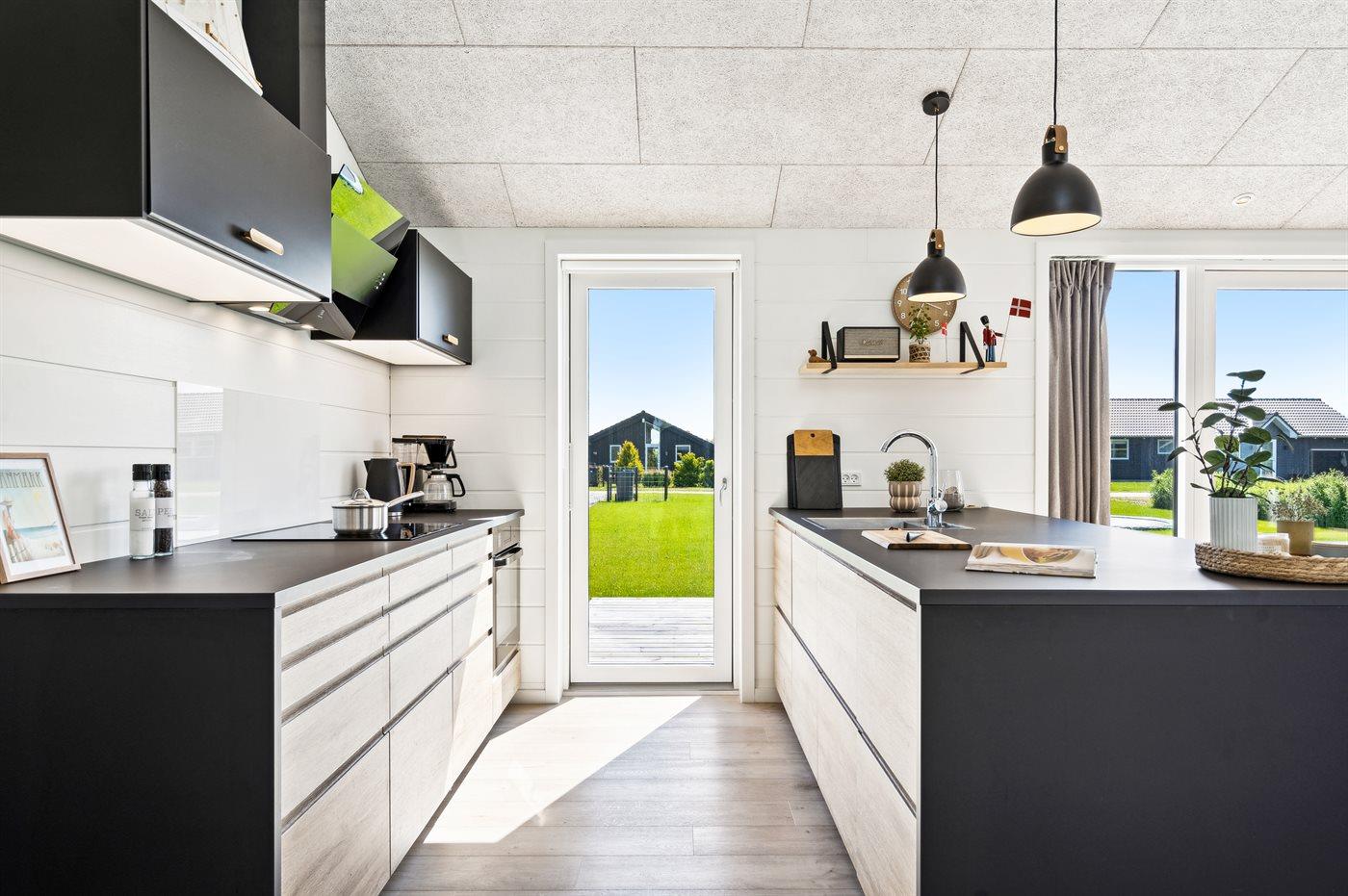 Køkkenet er udstyret med 1 køleskab. Der er 4 induktionskogeplader, varmluftovn, mikrobølgeovn samt opvaskemaskine.