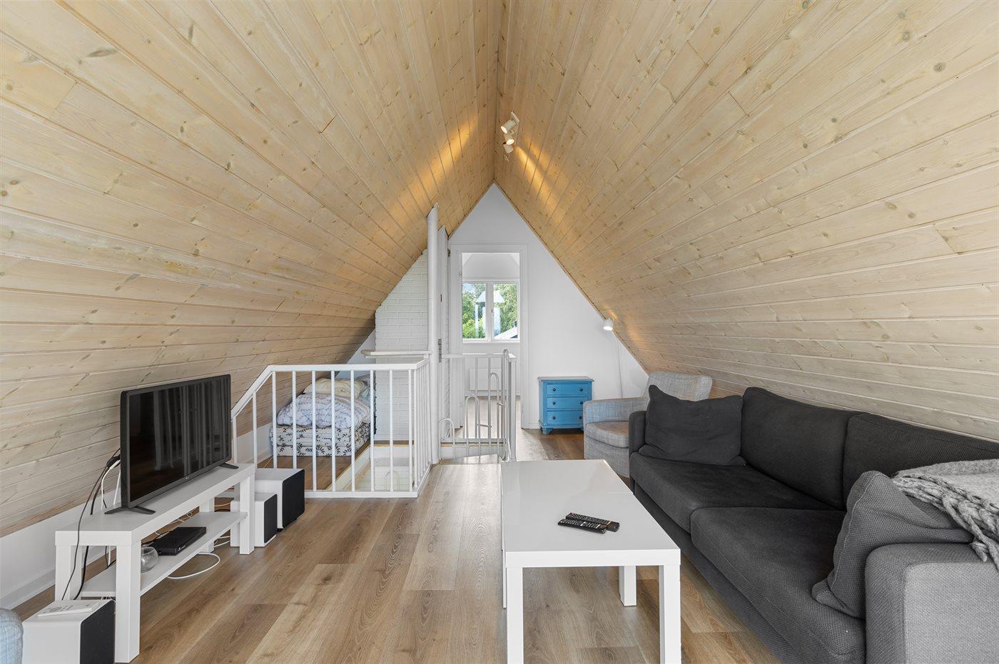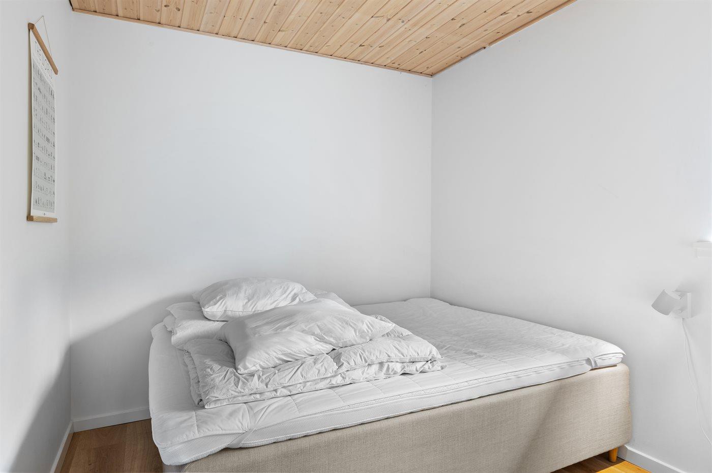 Et dejligt sommerhus i 1. række med et grønt område imellem huset og vandet. Huset er bygget i 2 plan, og fra stuen og tagterrassen på 1.sal er der en skøn udsigt ud over vandet. Fra tagterrassen kan man også nyde solnedgangen.