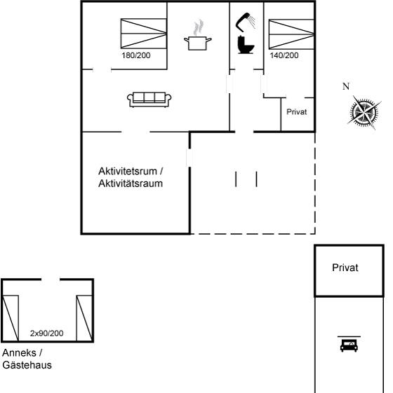 Der er i alt 3 soveværelser. Sovepladserne fordeler sig på: 4 sovepladser i dobbeltsenge. 2 sovepladser i enkeltsenge. 2 af disse sovepladser befinder sig i anneks. Derudover er der 1 stk. barneseng.