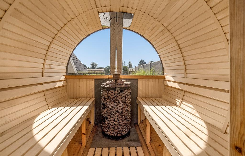 Der er terrasser på tre sider af huset, så I kan finde sol, skygge og læ efter behov. Skal I gøre det ekstra godt for jer selv, kan I nyde lidt god wellness i vildmarksbadet eller i tøndesaunaen, som kan låses af. Der er et godt tørrerum i skuret.