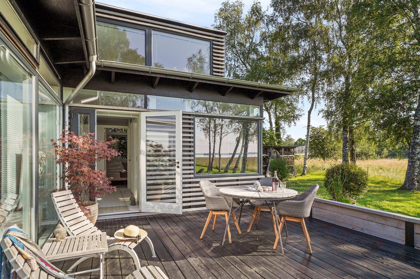 Arkitekttegnet sommerhus med fjordudsigt og vildmarksbad