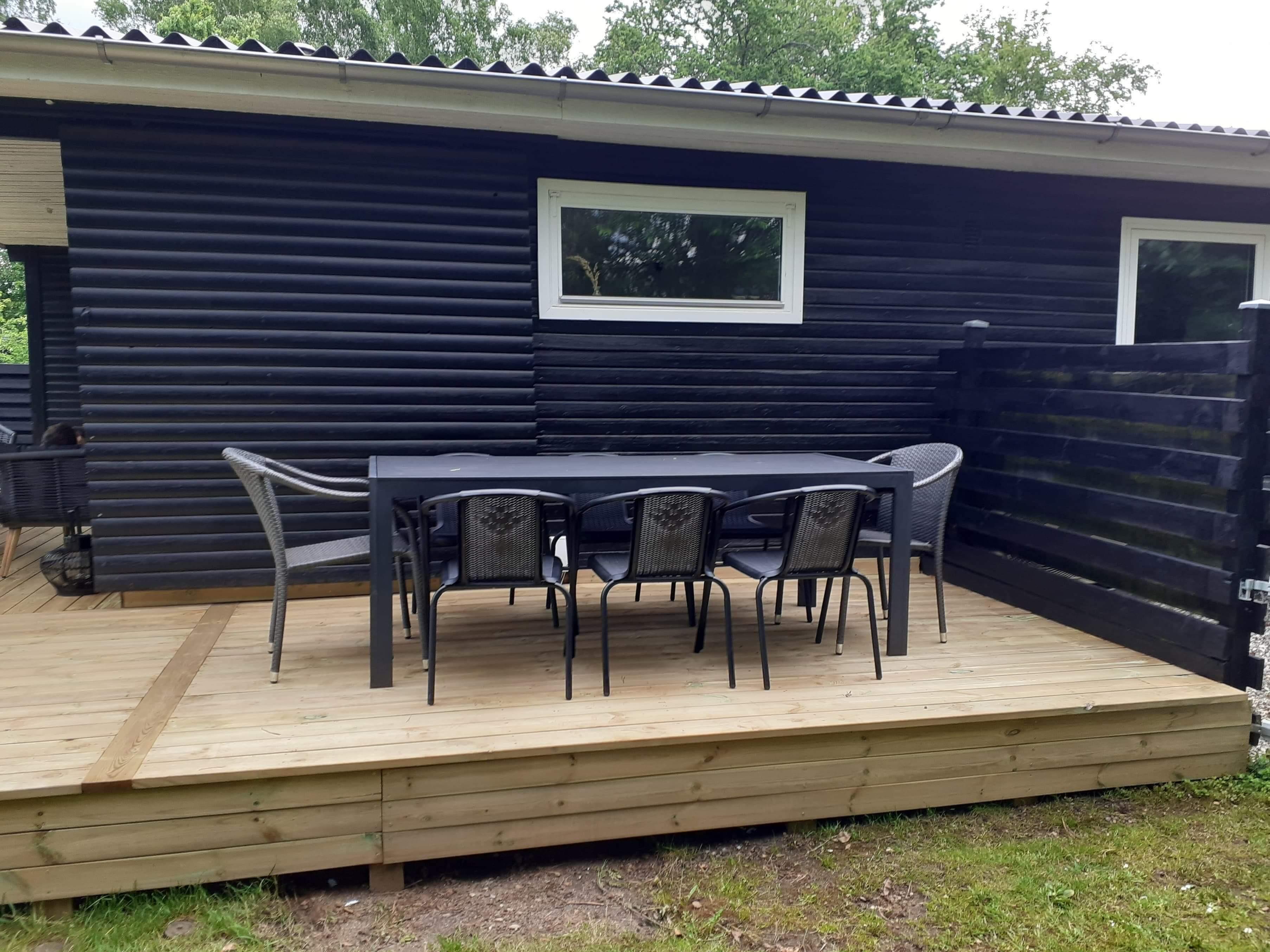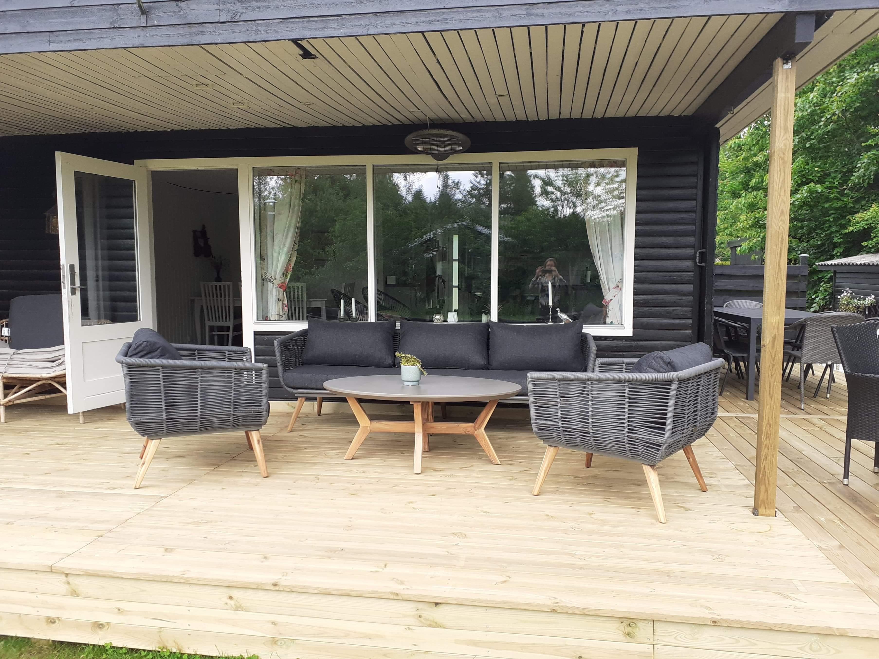 Stue og spisestue har udgang til nyanlagt terrasse med loungemøbler og den hyggelige have der er indhegnet og velegnet til både hund og mindre børn. Det er godt hus til den familie der ønsker sig et rigtigt sommerhus uden den store luksus. Huset har fibernet som tilkøbsmulighed.