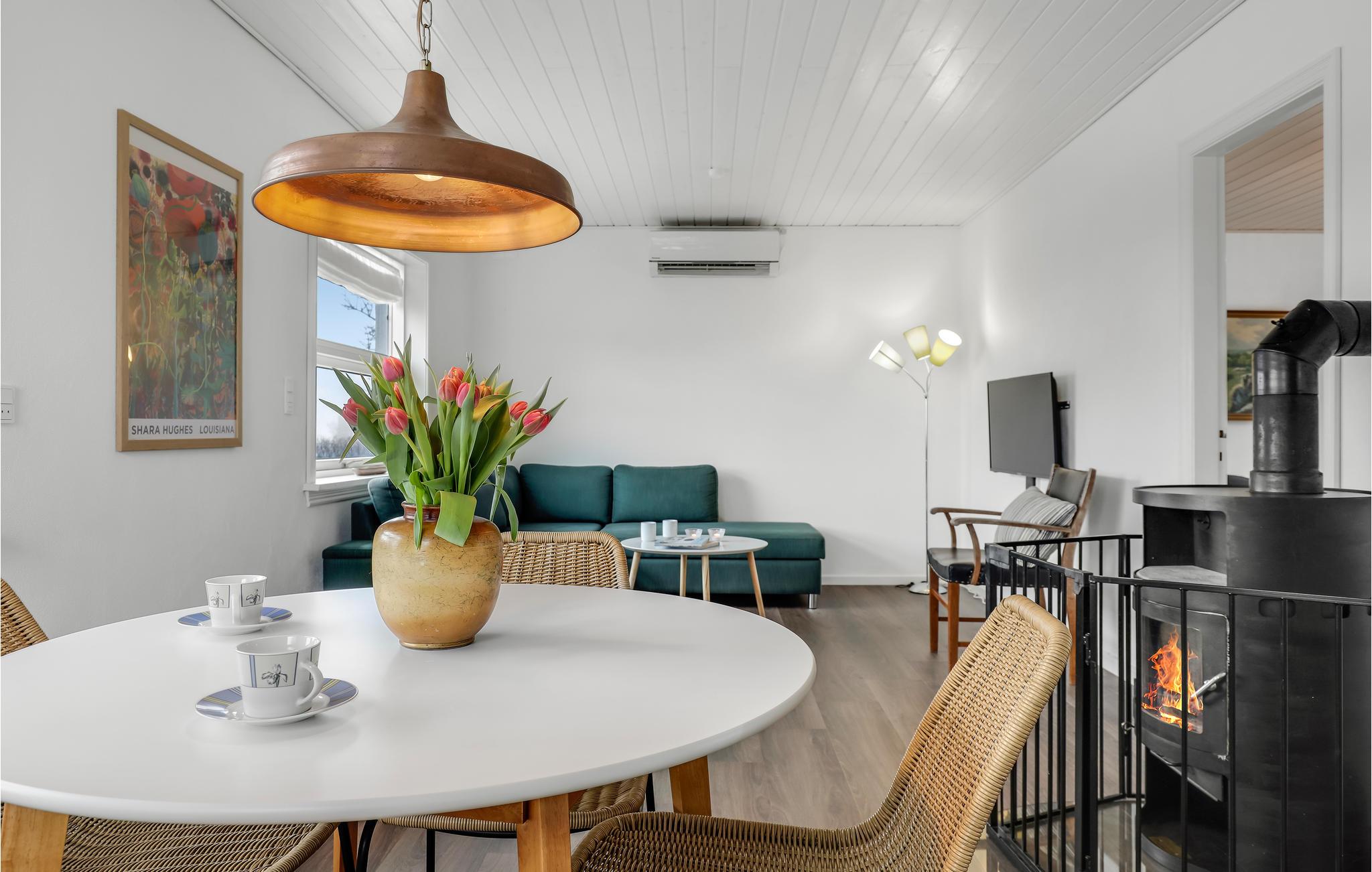 Dette fine lille hus har en dejlig beliggenhed tæt ved klippekysten på det nordlige Bornholm. Her får et godt udgangspunkt for jeres ferie. Boligen er lyst og hyggeligt indrettet med elegante detaljer kombineret med husets charmerende byggestil. Sammensæt dagens måltider med udsigt til haven, nyd middagene omkring spisebordet og læn jer senere godt tilbage i stuens bløde møbler, mens ilden blusser lystigt i brændeovnen.