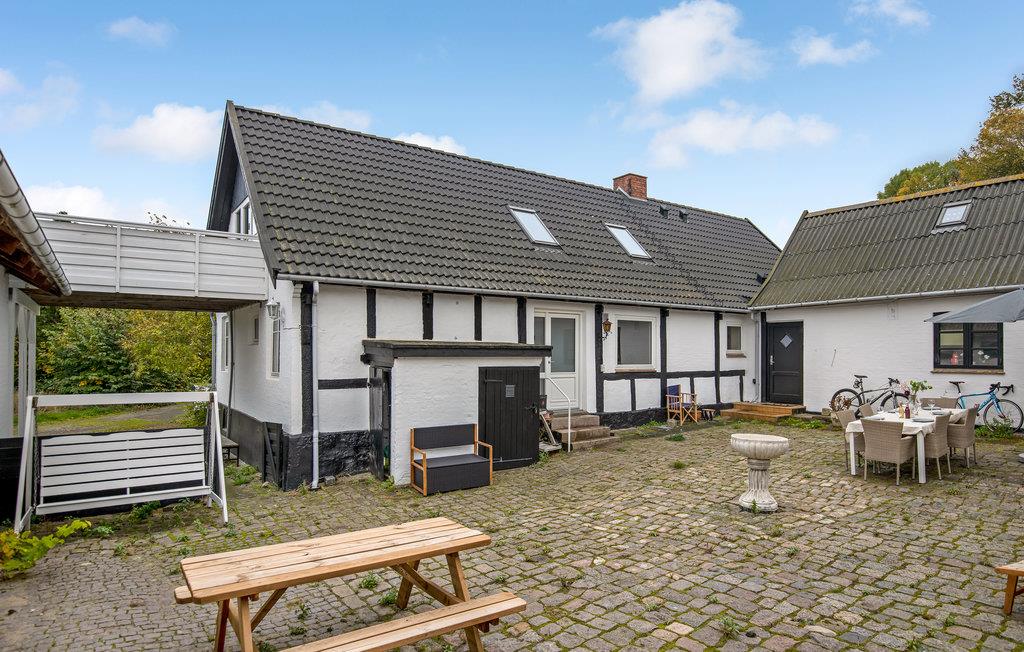 Denne ferielejlighed byder velkommen i den hyggelige havneby Tejn. Den store lejlighed i den tidligere firlængede gård byder på komfortable faciliteter og en stilfuld atmosfære, der straks får jer til at føle jer hjemme. Større familier eller to vennepar vil finde de ideelle rammer for ubekymrede feriedage her. I kan også nyde jeres tid i den hyggelige brostensbelagte gårdhave, hvor I kan tilbringe dovne eftermiddage og hyggelige sommeraftener. Her og på den store fælles naturgrund finder jeres børn masser af plads til at lege og måske møde nye legekammerater.