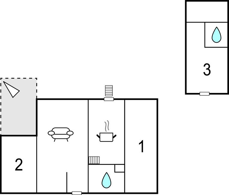 Soveværelse 15m2 (nr. 1) - 2 Sovepladser. (Dobbeltseng(e)). 1 Soveplads. (Etageseng(e)).
