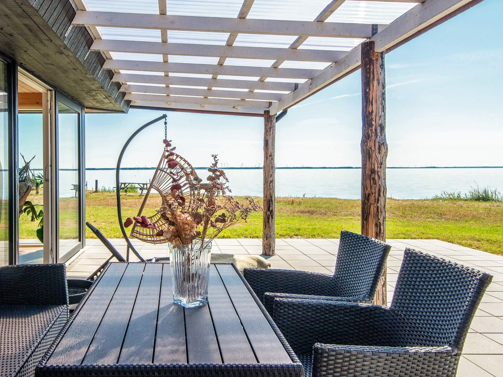 Indvendigt byder boligen på fire soveværelser, hver med en komfortabel dobbeltseng, et stort badeværelse med både bruser og badekar samt et gæstetoilet. Den lyse stue byder på masser af plads til samvær, enkel indretning i skandinavisk stil og panoramaudsigt over fjorden. Et Chromecast-kompatibelt tv giver dig mulighed for at streame dine yndlingsprogrammer, og fra stuen kan du træde ud på den overdækkede terrasse for at nyde den fantastiske udsigt over vandet og den friske luft.