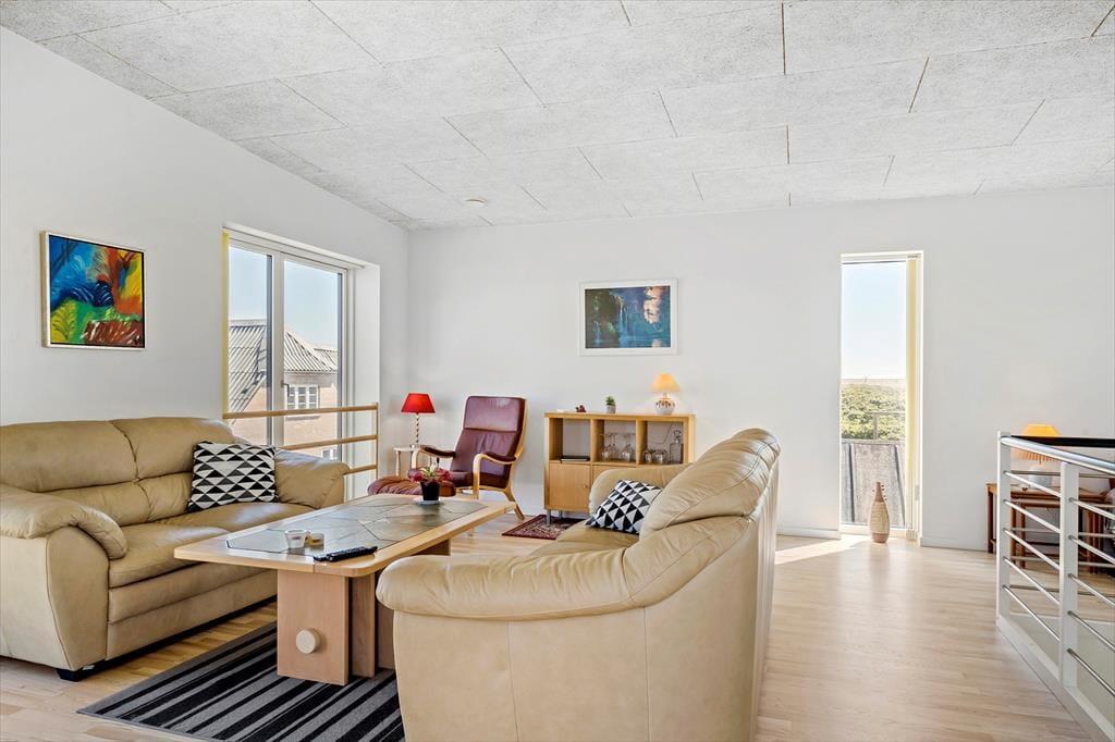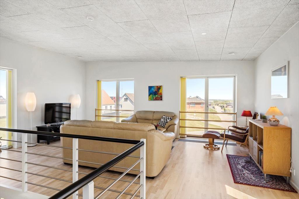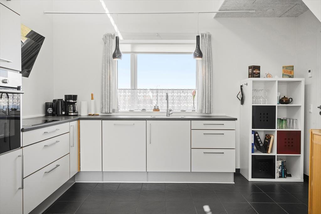 Glæd jer til at træde ind i et lyst og indbydende feriehus, hvor I straks føler jer hjemme. Her er der tænkt på jeres komfort – huset er smagfuldt indrettet med moderne og hyggelige møbler, som indbyder til afslapning og kvalitetstid. I finder to skønne soveværelser: ét med en dobbeltseng, hvor I kan vågne udhvilede op, og ét med en praktisk køjeseng – perfekt til børn eller gæster. Det åbne køkken ligger i forbindelse med den hyggelige spiseafdeling, så I kan nyde madlavningen og hinandens selskab på samme tid. Badeværelset er lækkert og funktionelt med en dejlig bruser. På førstesalen venter en rummelig opholdsstue med en helt særlig bonus – en vidunderlig udsigt til både Limfjorden og Vesterhavet. Glæd jer til at nyde aftenerne her, hvor I kan betragte solnedgangen male himlen over havet i de smukkeste farver. Dette er stedet, hvor ferieminder skabes.