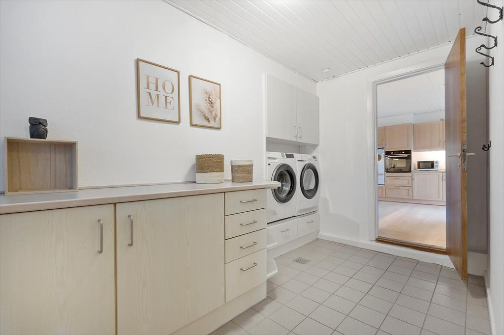 Fra køkkenet kommer I direkte ud på terrassen og i den lukkede have, hvor der er god plads til leg og afslapning. Her kan børnene spille bold eller lege fangeleg, mens de voksne nyder solen og den friske, salte havluft. Den dejlige terrasse indbyder til hyggelige eftermiddage med et glas vin, snakke om dagens oplevelser og stille aftener under åben himmel. Når solen går ned, forvandler himlen sig til en palet af røde og orange nuancer – den perfekte baggrund til et måltid i det fri. I det store udhus er der plads til både cykler og fiskegrej, så alt er klar til jeres næste tur ud i naturen.