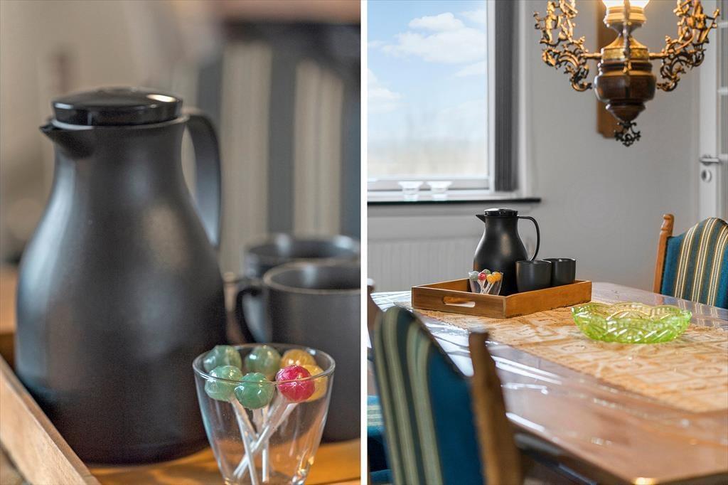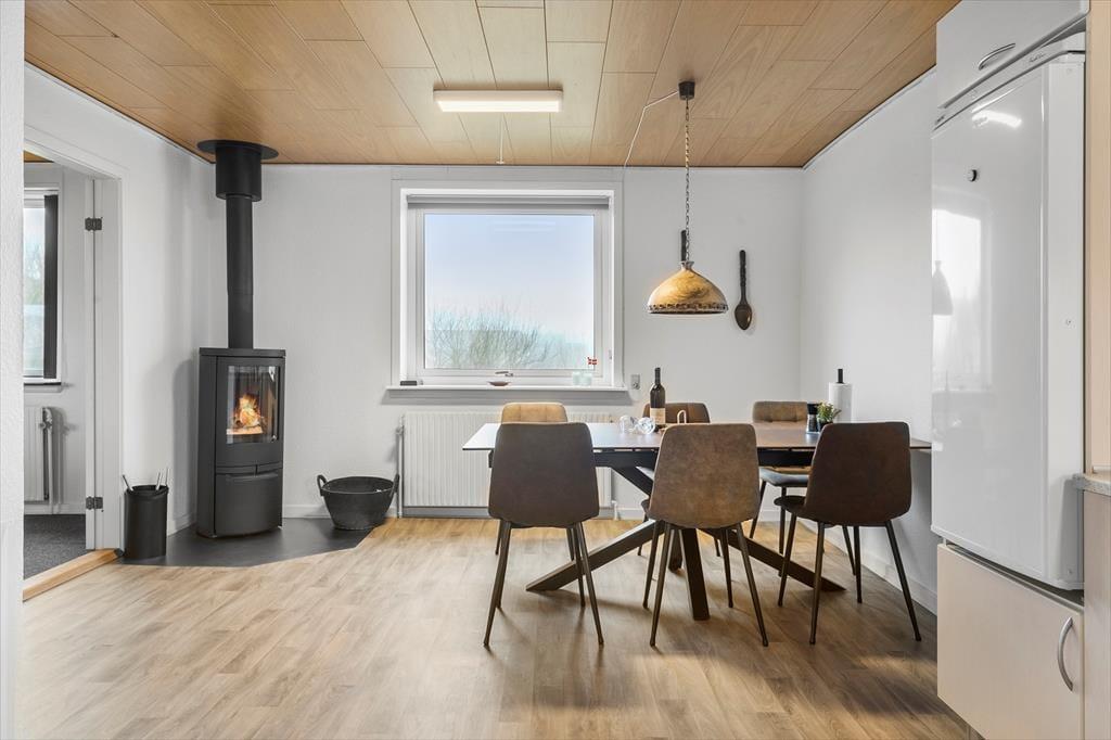Dette dejlige feriehus er smagfuldt indrettet og byder på en fantastisk udsigt over fjorden, som I kan nyde direkte fra køkkenvinduet. Når I træder ind, møder I husets varme og hyggelige atmosfære. De to separate afdelinger giver jer mulighed for at trække jer tilbage og slappe af, når behovet melder sig. Saml familien i det åbne køkken, hvor duften af aftensmad fylder rummet og sætter scenen for gode samtaler over et glas vin. Efter middagen kan I lade roen sænke sig i den komfortable stue, hvor I kan nyde en kop varm kakao eller te med fødderne oppe.
