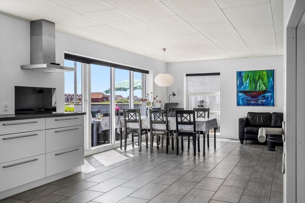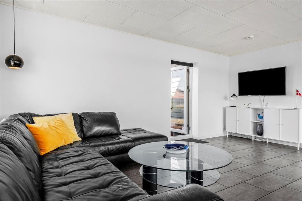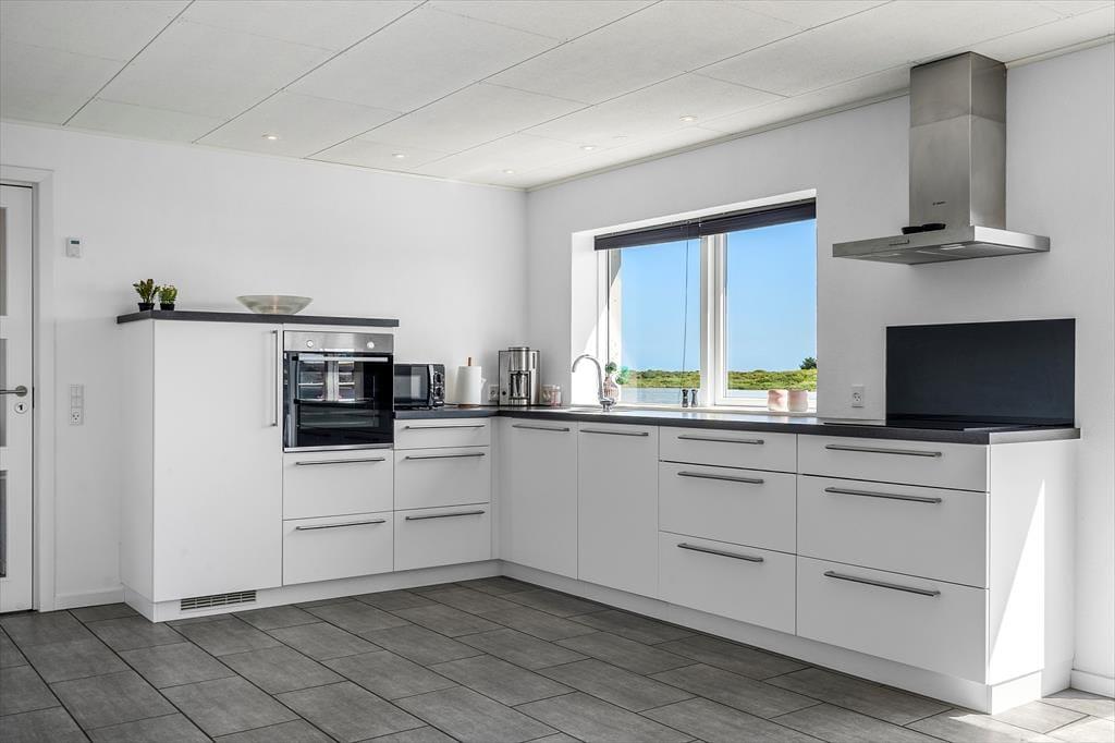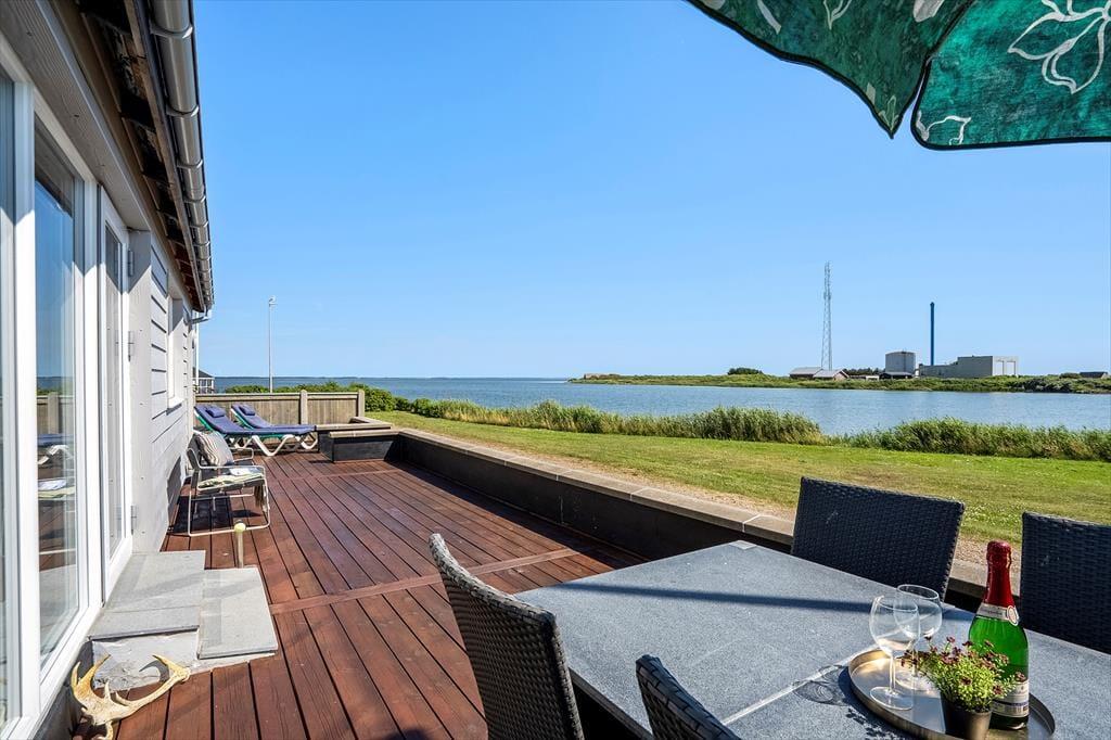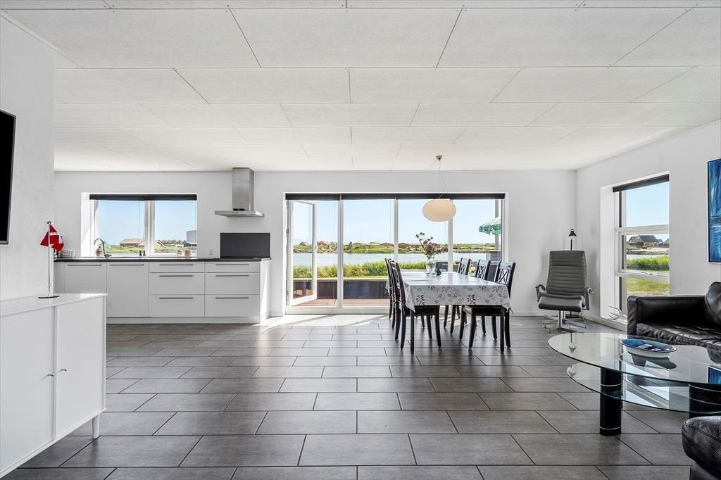 Glæd jer til at træde ind i et moderne, nyrenoveret feriehus, hvor alt er gjort klar til en afslappende ferie. Det store, åbne køkkenalrum er husets naturlige samlingspunkt – her er masser af plads til både madlavning, hygge og fælles måltider. Fra stuen har I noget helt særligt: en panoramaudsigt direkte ud over Nissum Fjord. Uanset om I sidder med morgenkaffen, læser en bog i sofaen eller bare nyder roen, så er det svært ikke at lade blikket falde på vandet – fjorden ligger kun 20 meter fra huset og skaber en helt særlig stemning, både i solskin og regn.