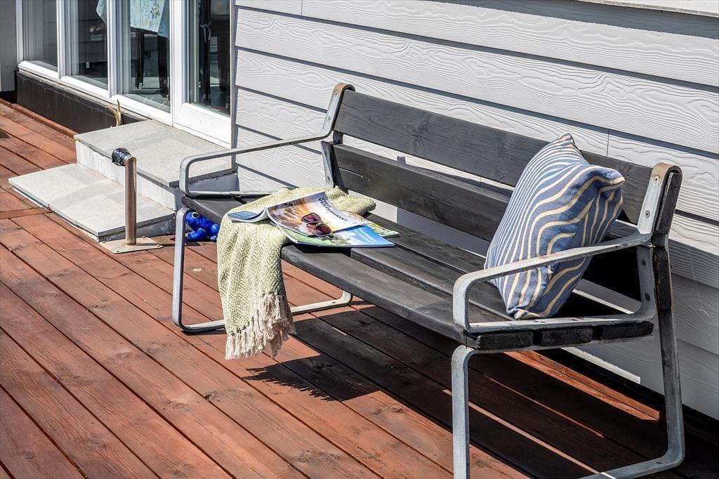 Udenfor venter der jer skønne rammer til afslapning og udeliv. Foran huset ligger en stor terrasse med fri udsigt til fjorden – perfekt til at starte dagen med en stille kop kaffe eller afslutte den med grillmad under åben himmel. På siden af huset er der endnu en terrasse, hvor I kan finde læ og fred. Haven er stor og grøn, og her er masser af plads til både afslapning, leg og jeres firbenede ven – for hunden er naturligvis også velkommen.