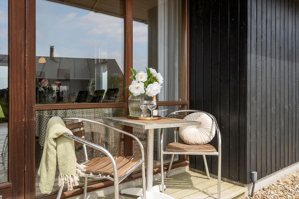 Den østvendte terrasse byder på morgensol og en stille start på dagen. Nyd kaffen under åben himmel, læs en bog i loungemøblerne eller slap af med udsigt til grønne omgivelser. Terrassen indbyder til både ro og samvær – et ideelt sted til morgenmad under åben himmel eller en afslappet frokost i skyggen. Når dagen går på hæld, er det oplagt at tænde op i grillen og nyde aftenen i det fri – omgivet af naturens lyde og den friske luft.