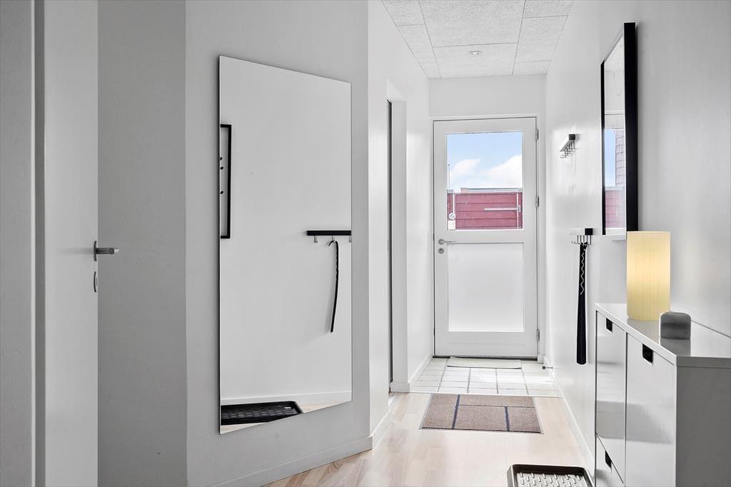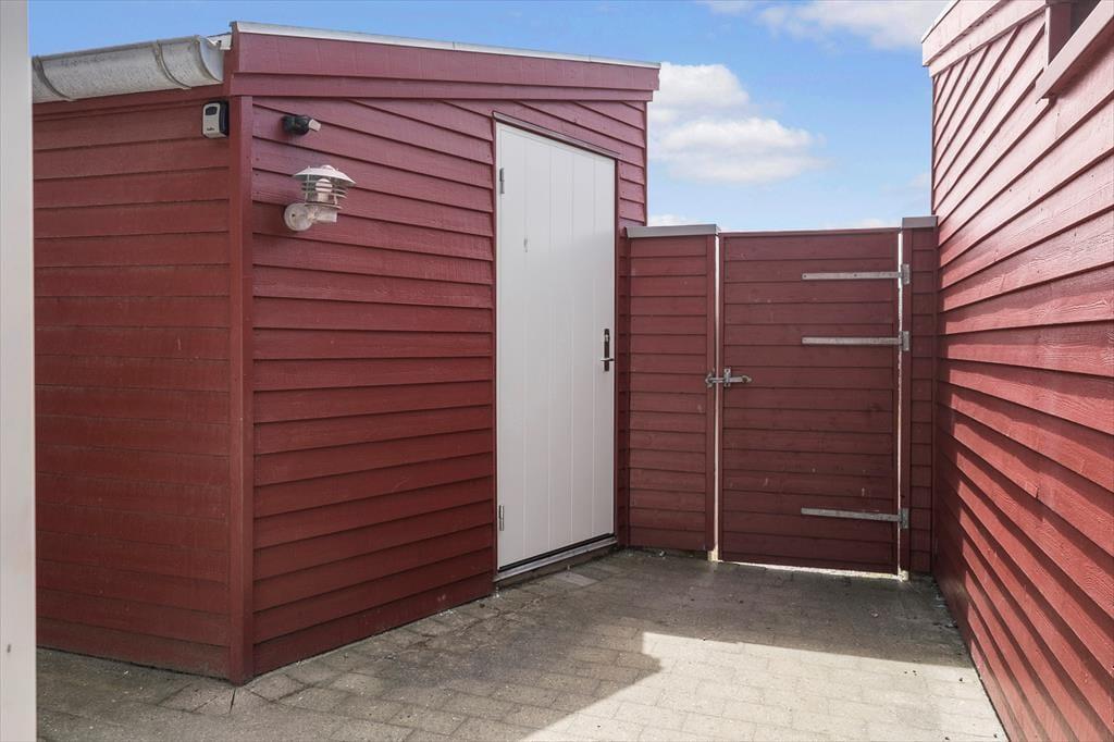 På den store sydvendte terrasse kan I nyde solens varme fra morgen til aften. Komfortable havemøbler og en grill gør det nemt at tilberede dagens fangst eller nyde et måltid under åben himmel. Den lille, lukkede gårdhave ved indgangen giver privatliv og ro, og her finder I et praktisk fiskerensebord – perfekt efter en dag med fiskeri. Ved siden af ligger et skur med en 100 liters fryser, så I kan opbevare dagens fangst. Dette sommerhus er den ideelle base for jer, der elsker natur, fiskeri og hyggelige stunder udendørs.